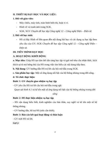II. THIẾT BỊ DẠY HỌC VÀ HỌC LIỆU: