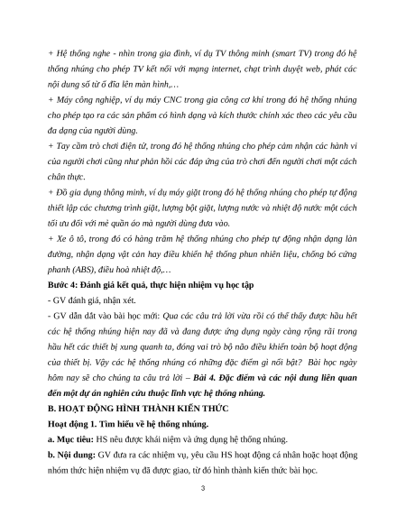 - HS vận dụng hiểu biết, kinh nghiệm của bản thân, suy nghĩ và kể tên một số hệ thống nhúng.