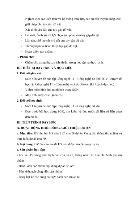 học tập Công nghệ 11 - Công nghệ cơ khí, Giáo án (kế hoạch dạy học).