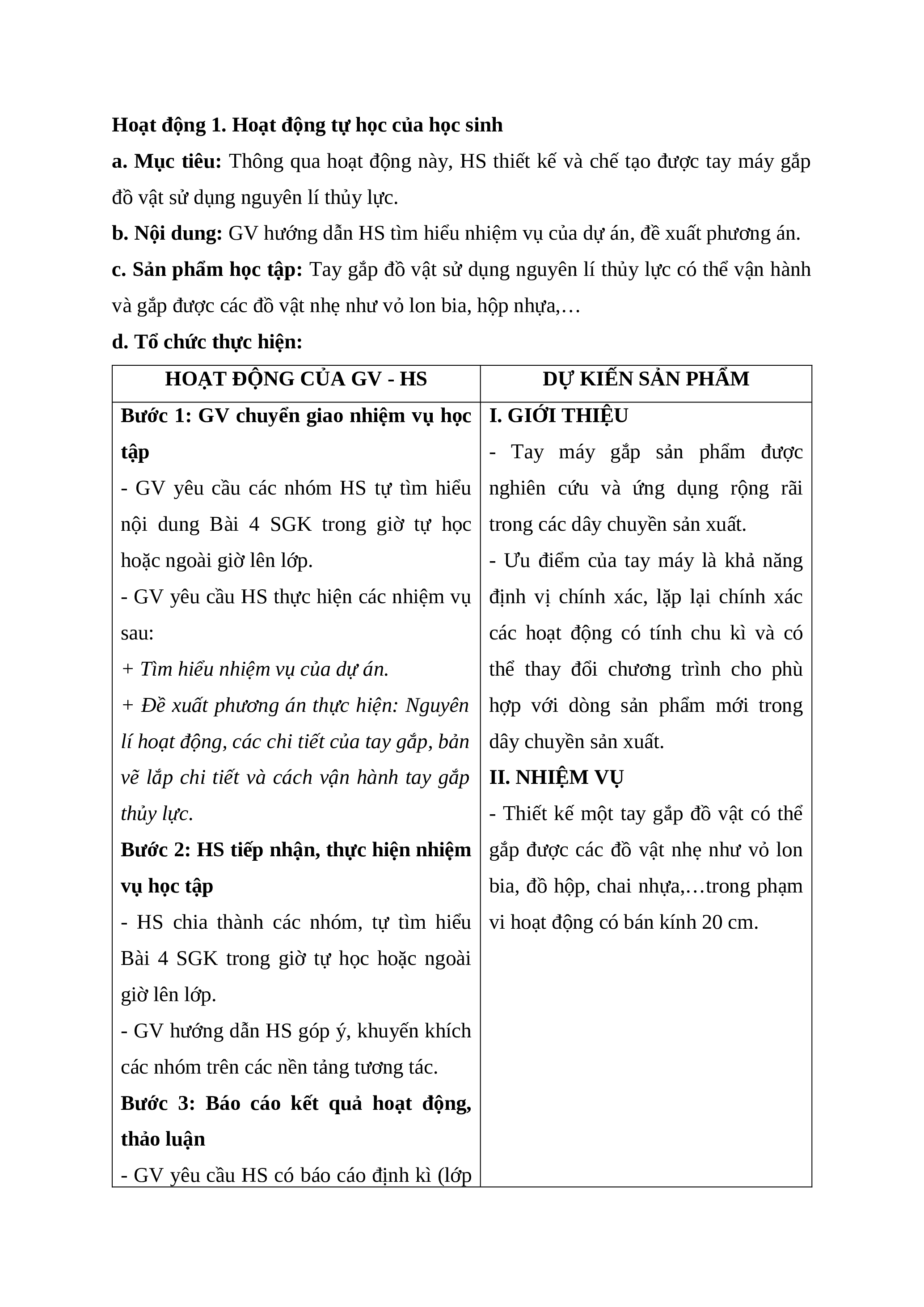 bài: Để thiết kế và chế tạo được tay gắp thủy lực, chúng ta vào bài học ngày hôm