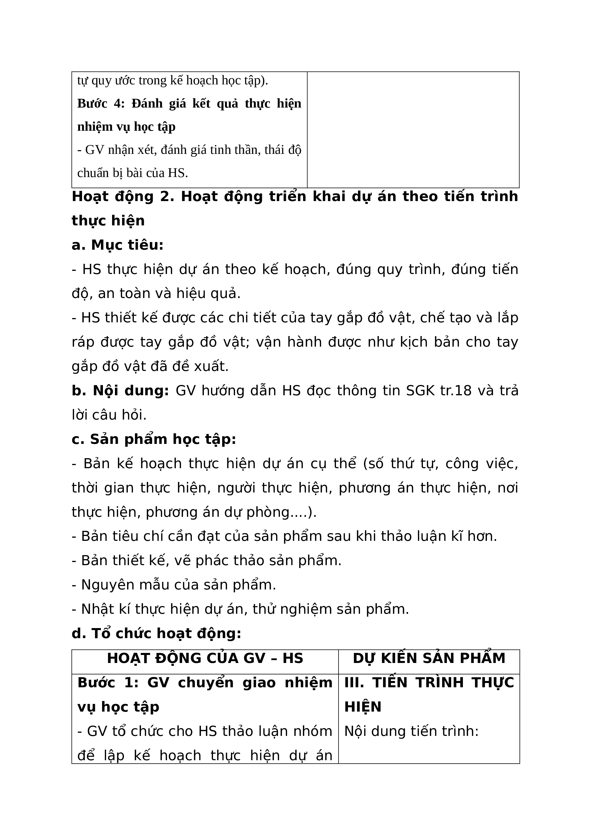 - GV lập kế hoạch thực hiện và cách đánh giá dự án, đánh giá HS.