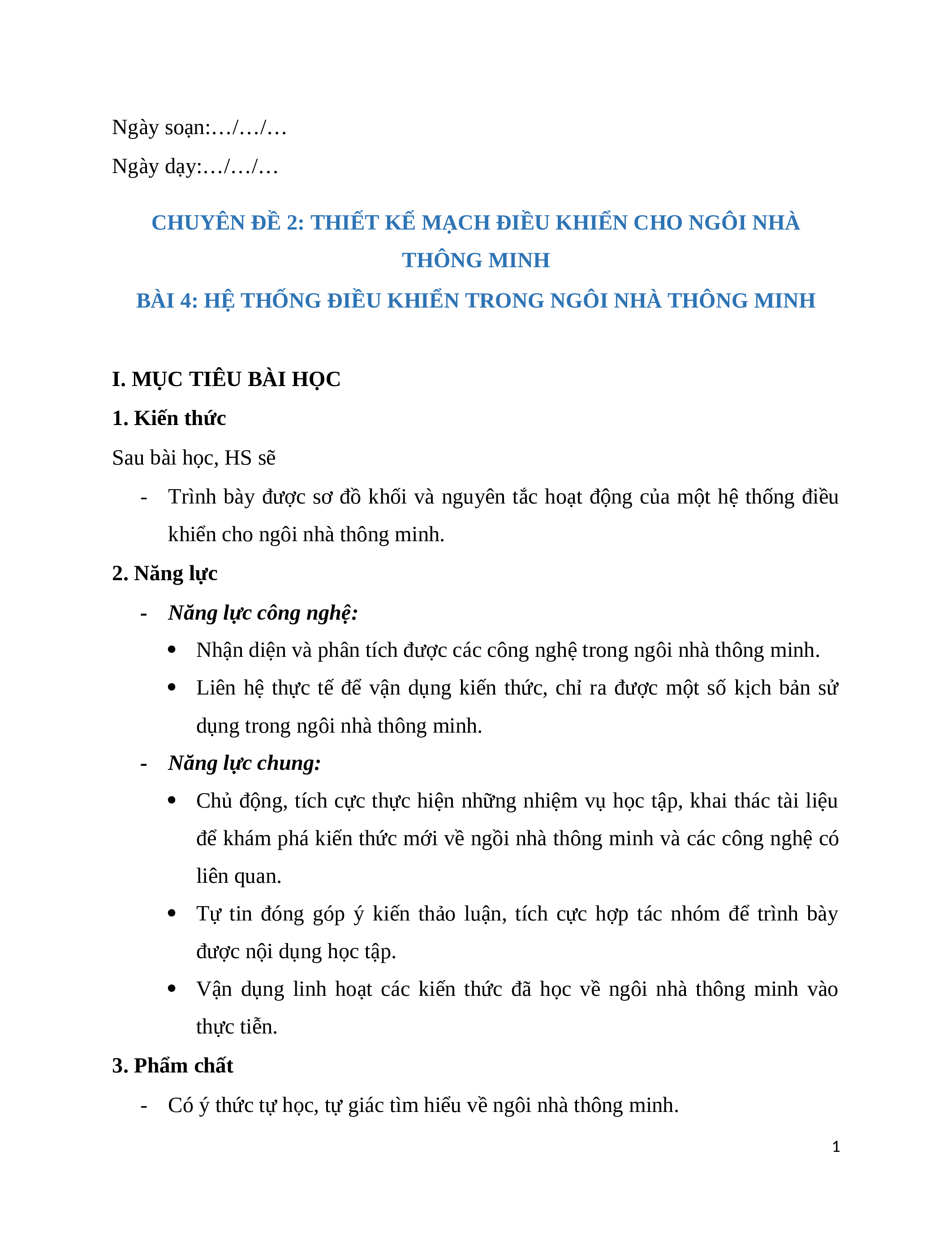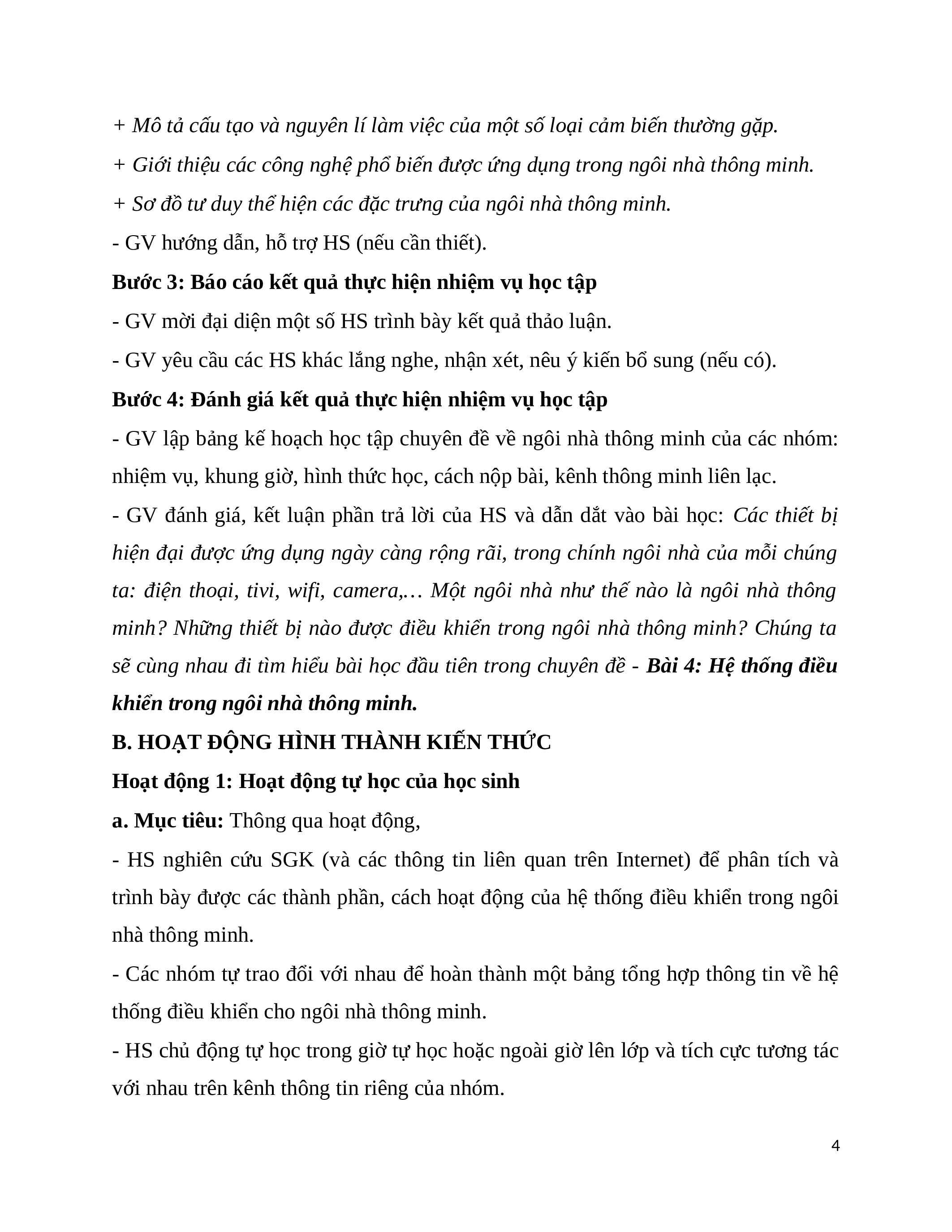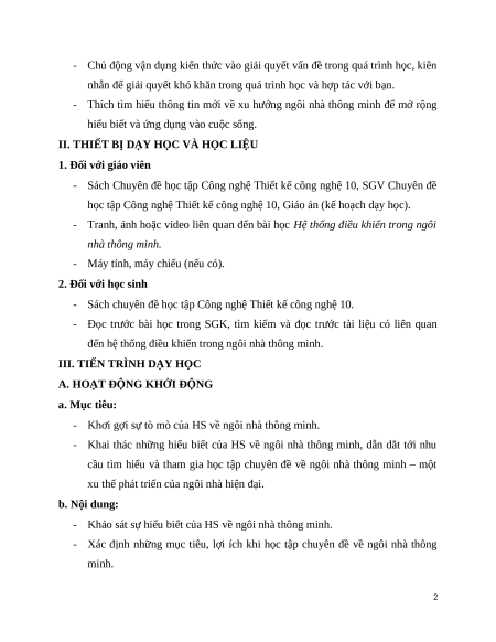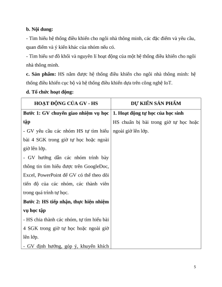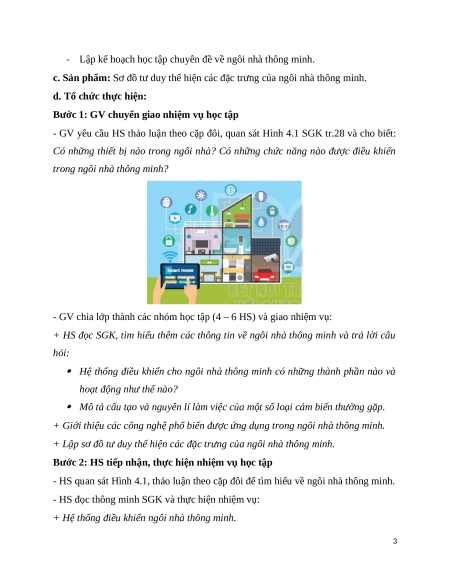 - Lập kế hoạch học tập chuyên đề về ngôi nhà thông minh.