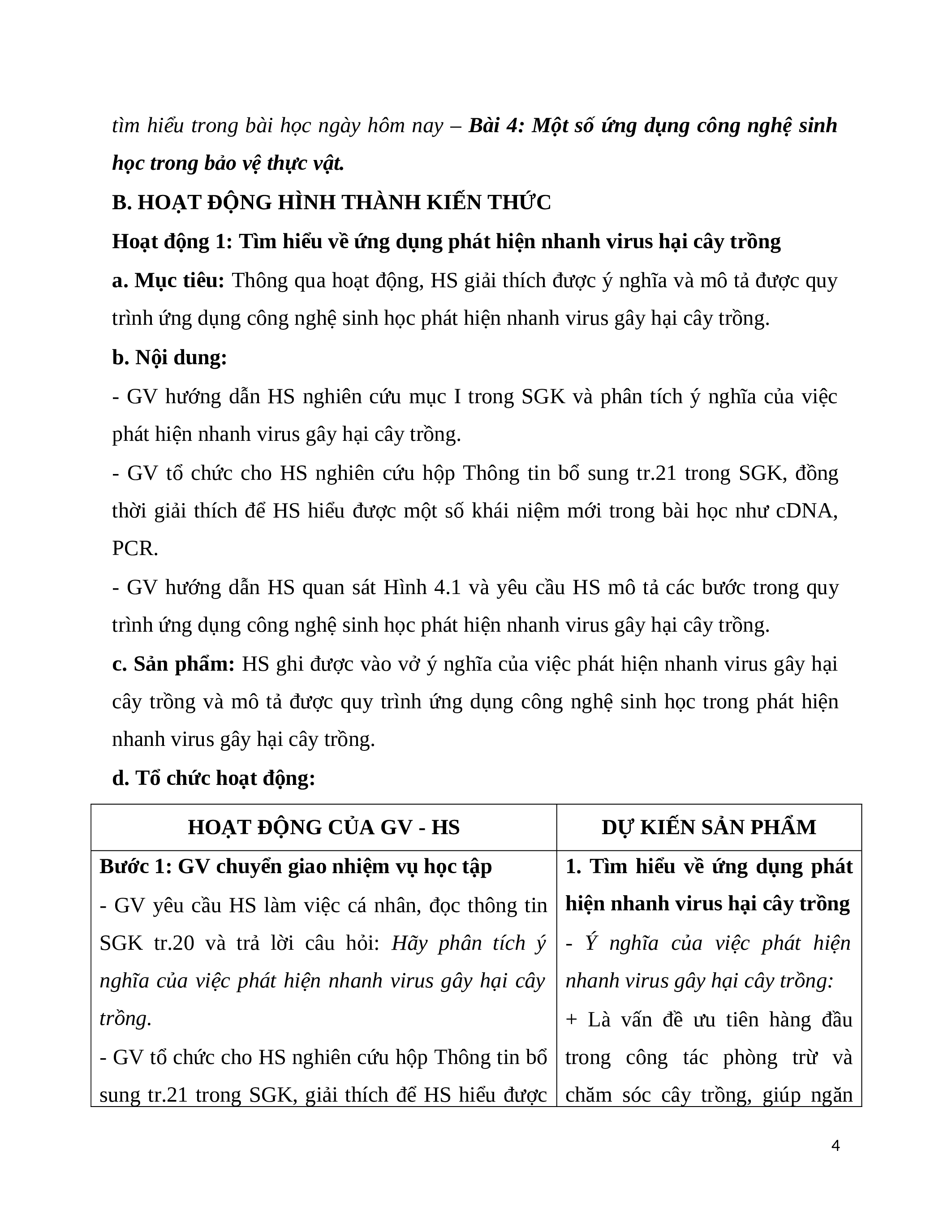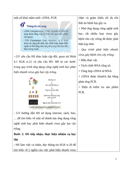 trình ứng dụng công nghệ sinh học phát hiện nhanh virus gây hại cây trồng. b. Nội dung: