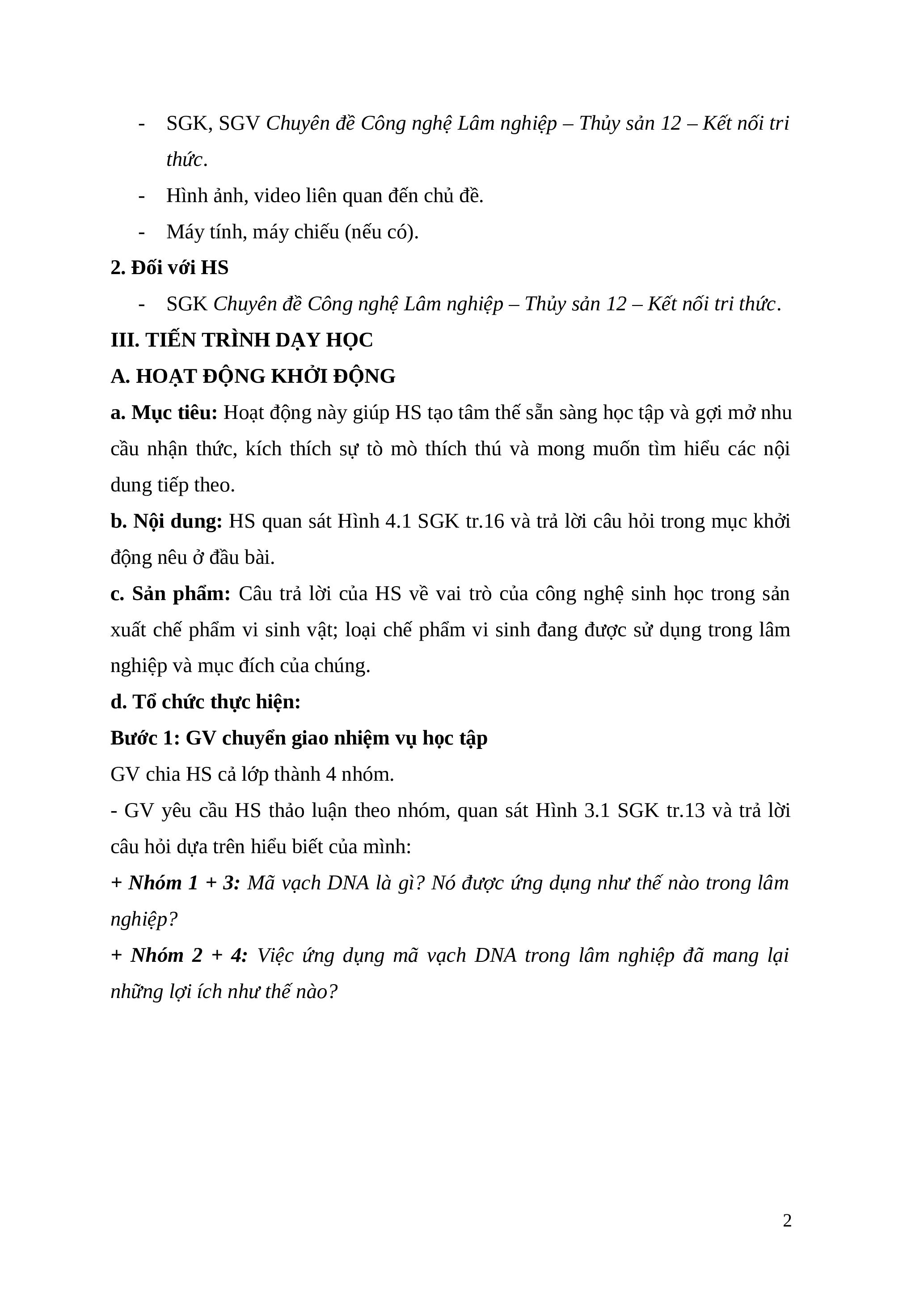 Giáo án chuyên đề Bài 4: Ứng dụng mã vạch DNA trong lâm nghiệp Công nghệ Lâm nghiệp thủy sản 12 Kết nối tri thức