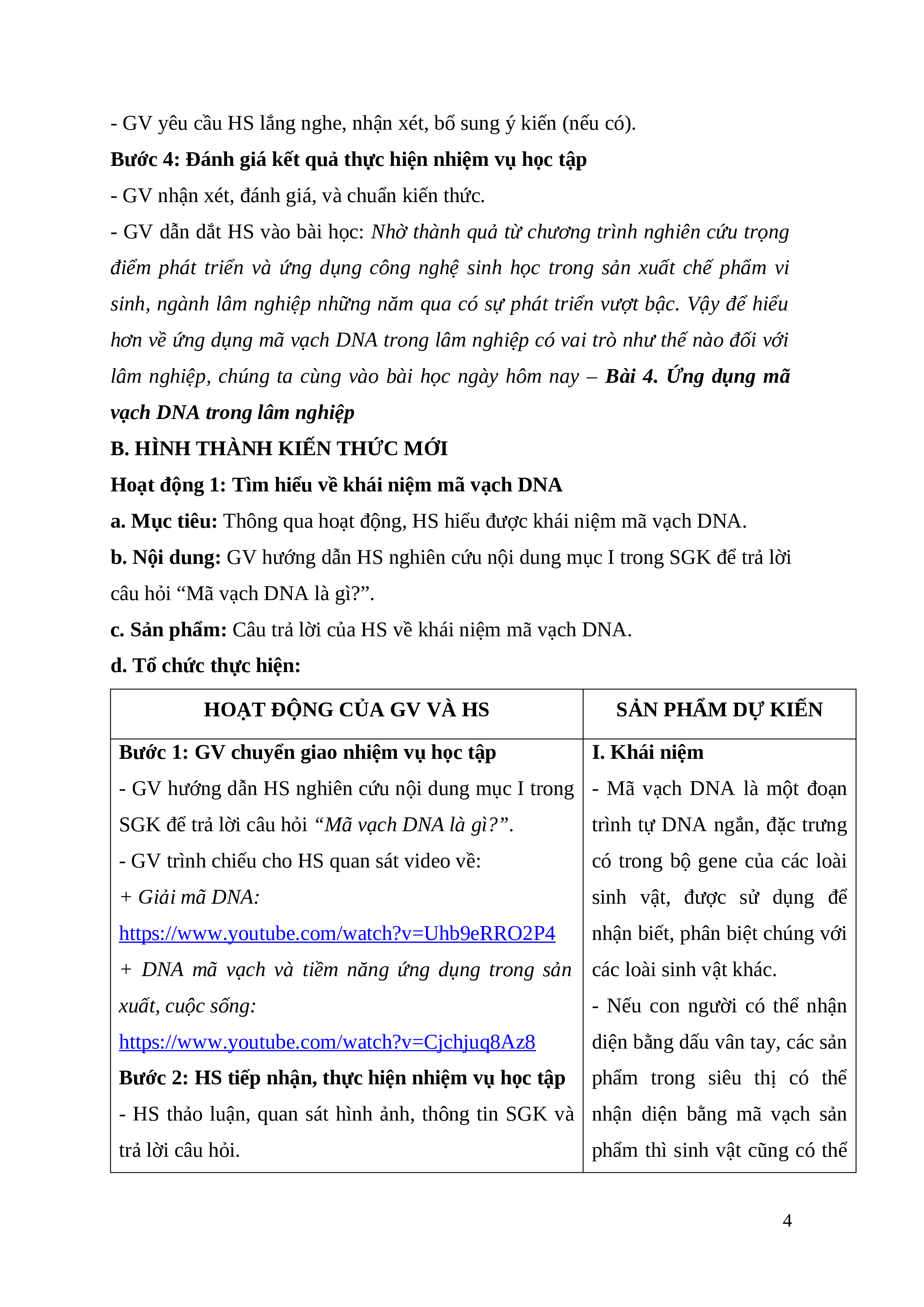 BÀI 4: ỨNG DỤNG MÃ VẠCH DNA TRONG LÂM NGHIỆP I. MỤC TIÊU 1. Kiến thức: