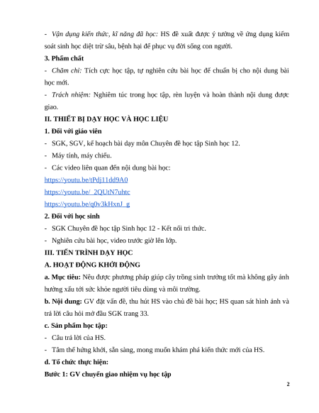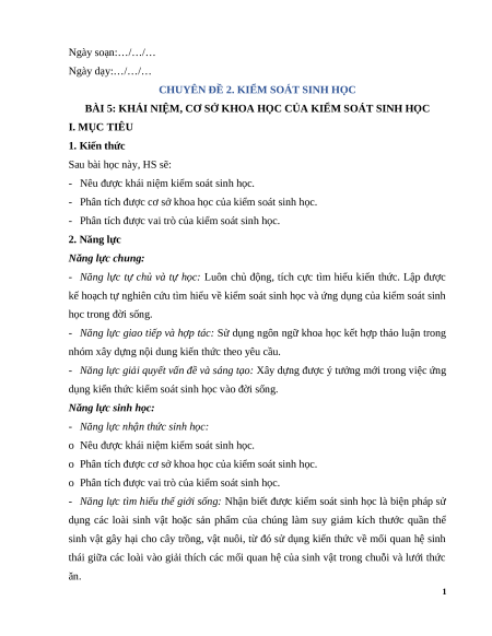 - Phân tích được vai trò của kiểm soát sinh học. 2. Năng lực