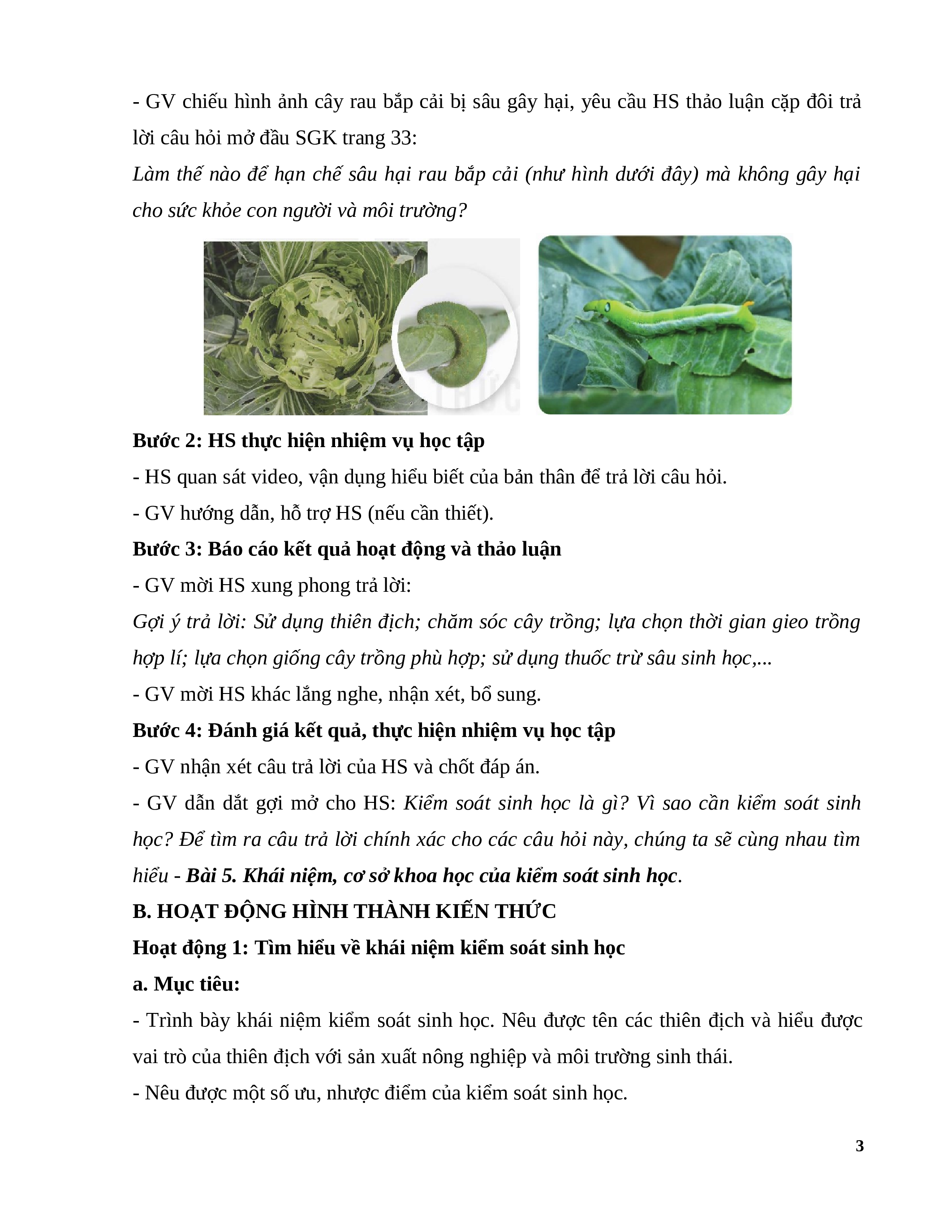 - Nêu được một số ưu, nhược điểm của kiểm soát sinh học. 3