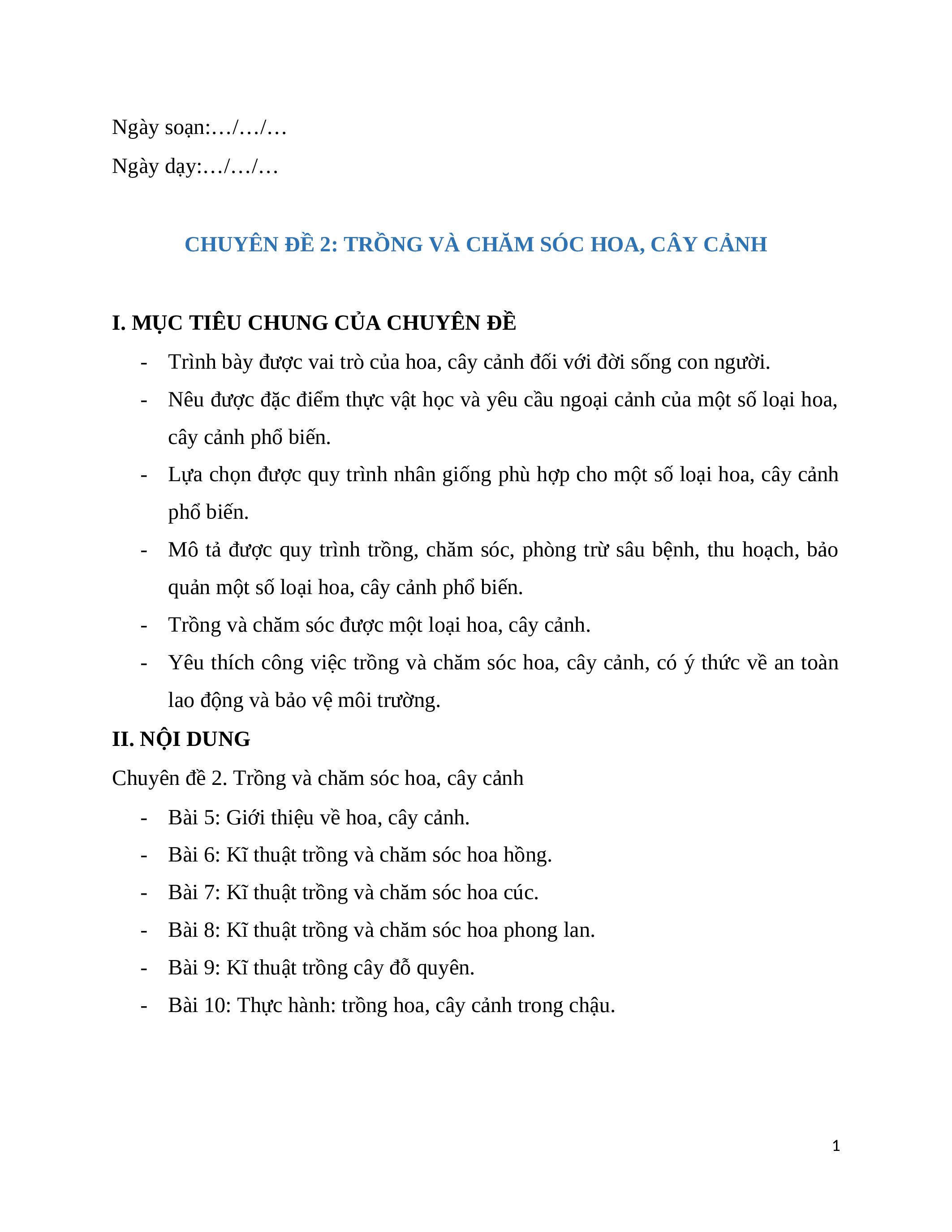 Chuyên đề 2. Trồng và chăm sóc hoa, cây cảnh