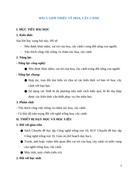- Bài 5: Giới thiệu về hoa, cây cảnh.