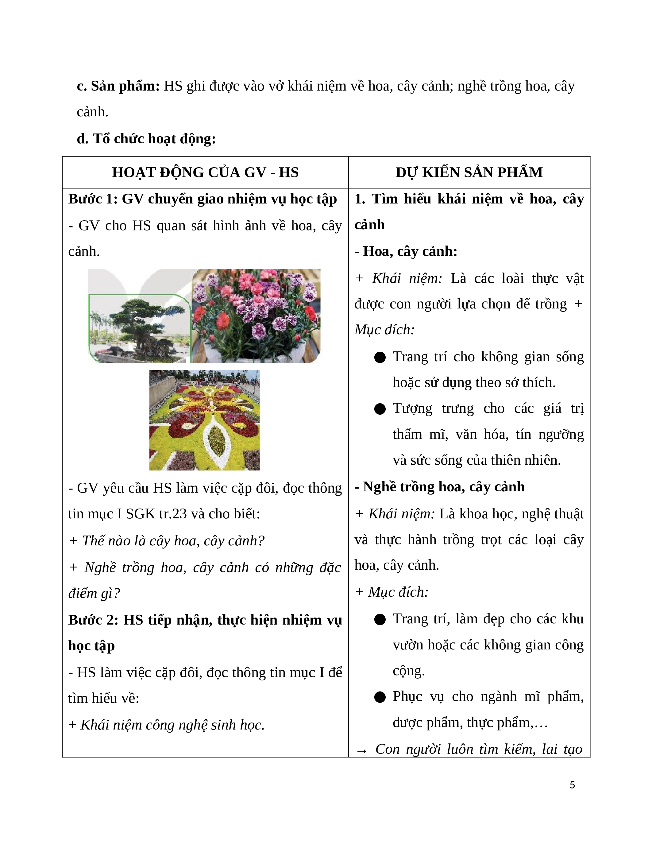 GV, HS tự rút ra khái niệm về hoa và cây cảnh trong trồng trọt.