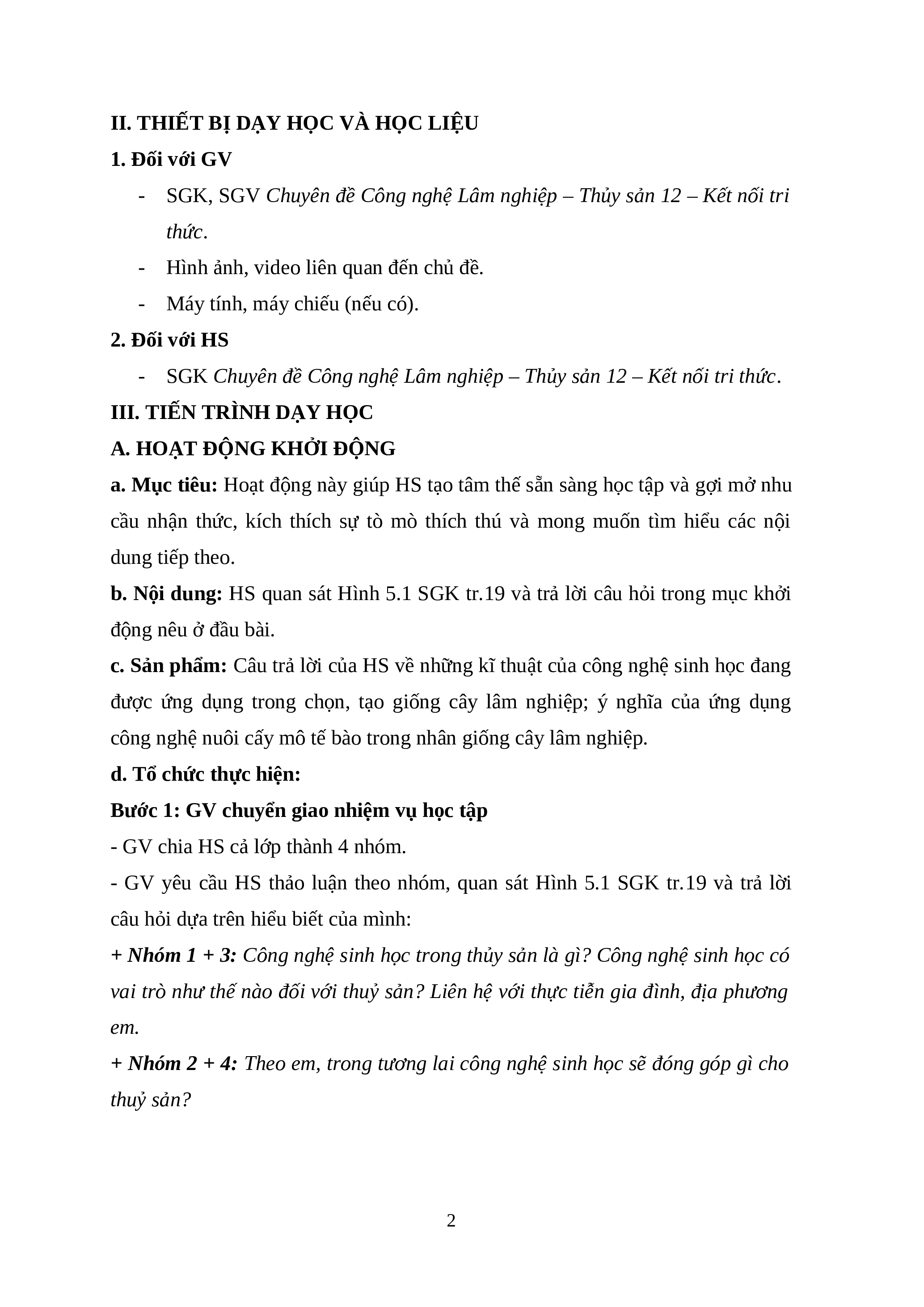 Bộ Giáo án chuyên đề Công nghệ Lâm nghiệp thủy sản 12 Kết nối tri thức đã cập nhật đủ Cả năm.