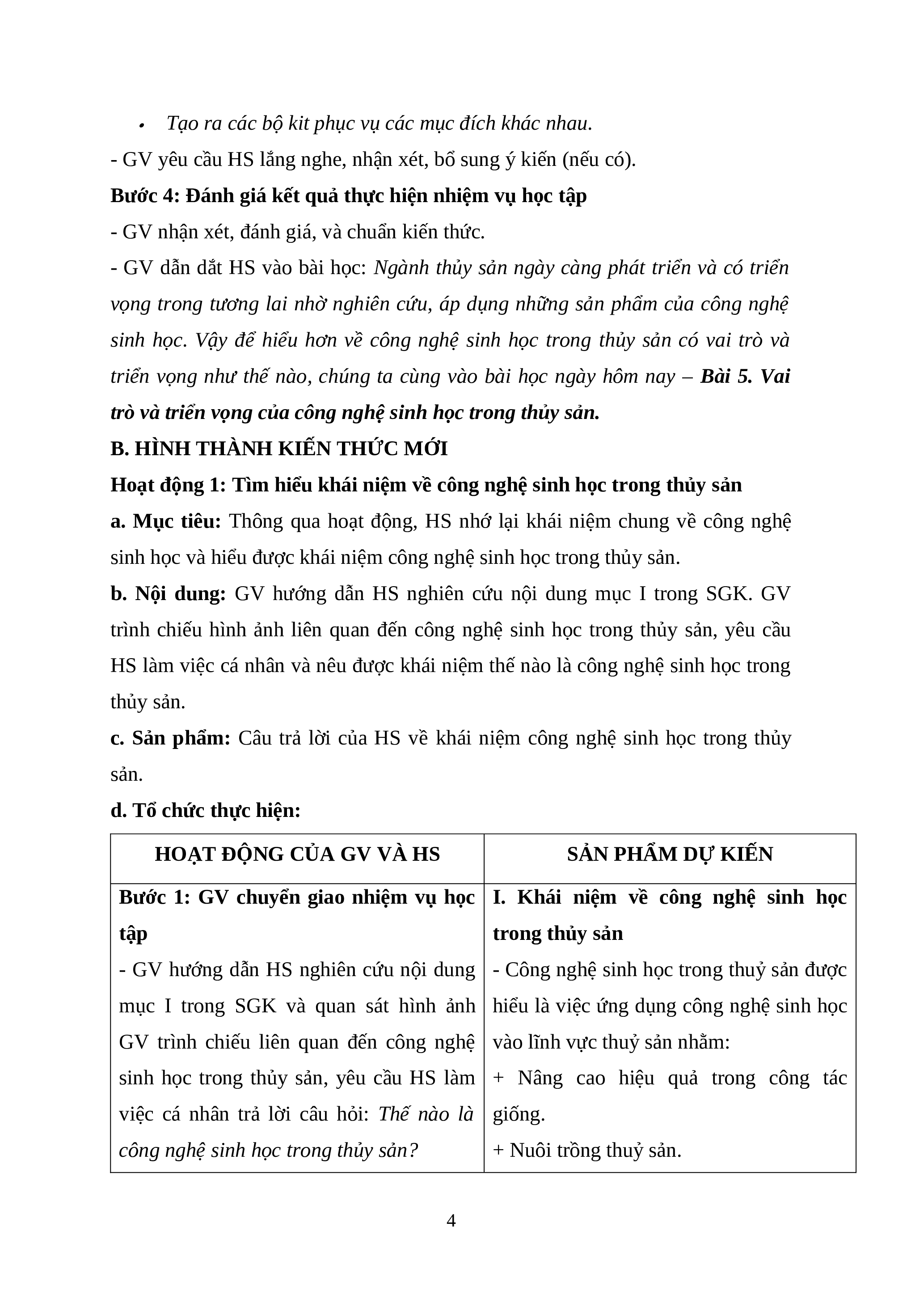 Giáo án chuyên đề Bài 5: Vai trò và triển vọng của công nghệ sinh học trong thủy sản 12 Kết nối tri thức