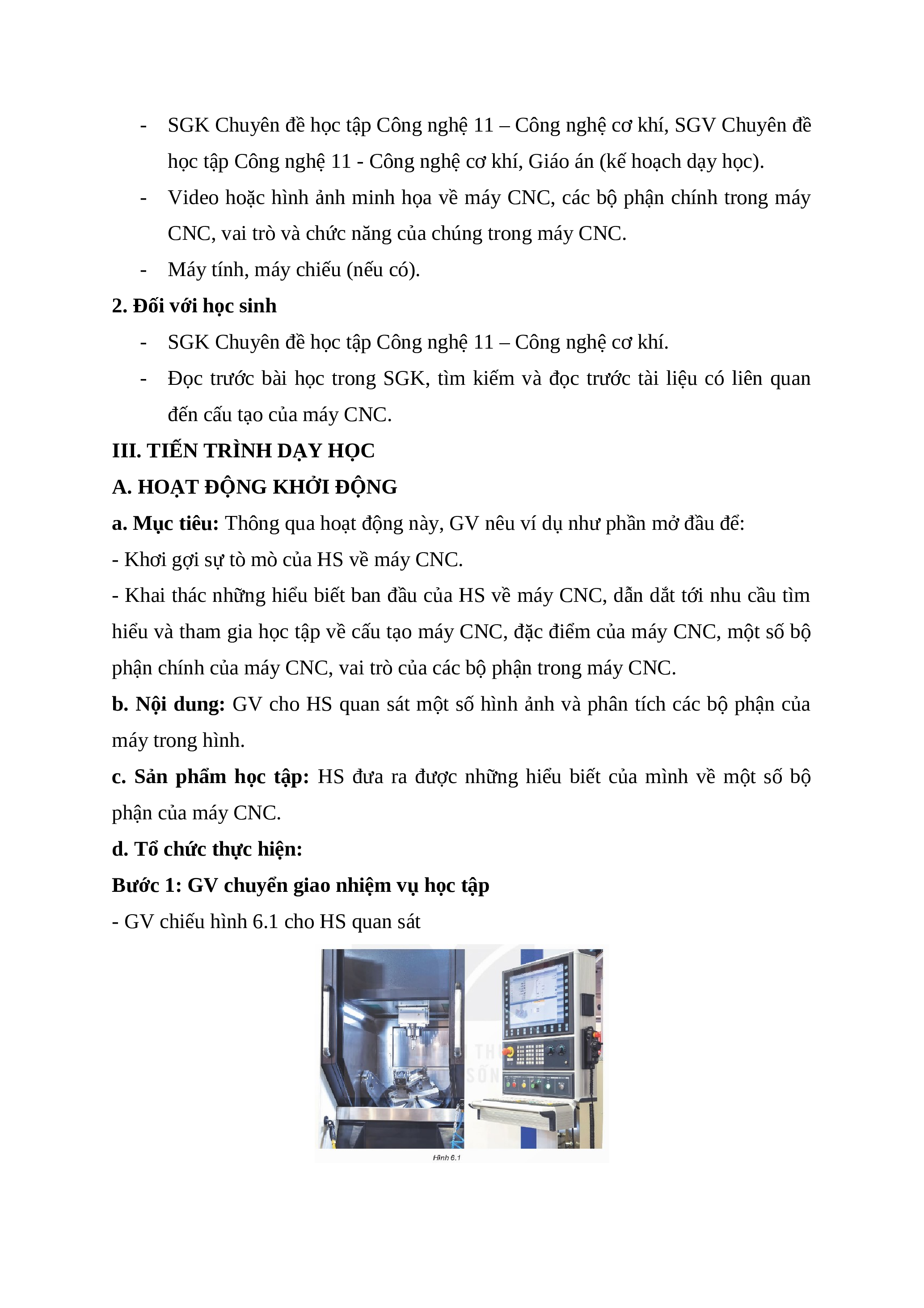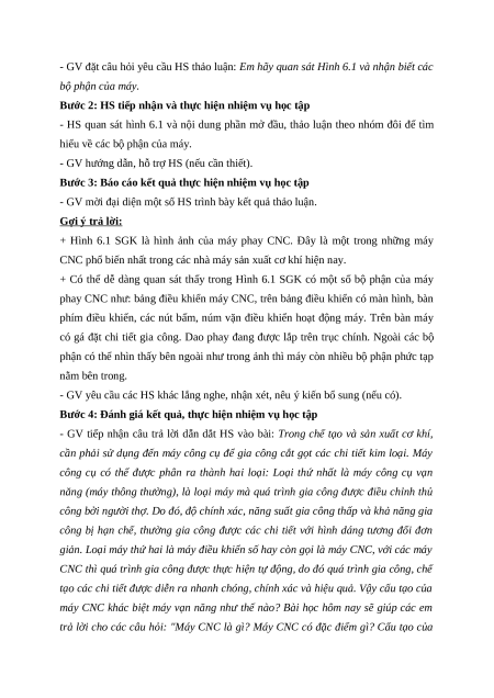 - Khai thác những hiểu biết ban đầu của HS về máy CNC, dẫn dắt tới nhu cầu tìm