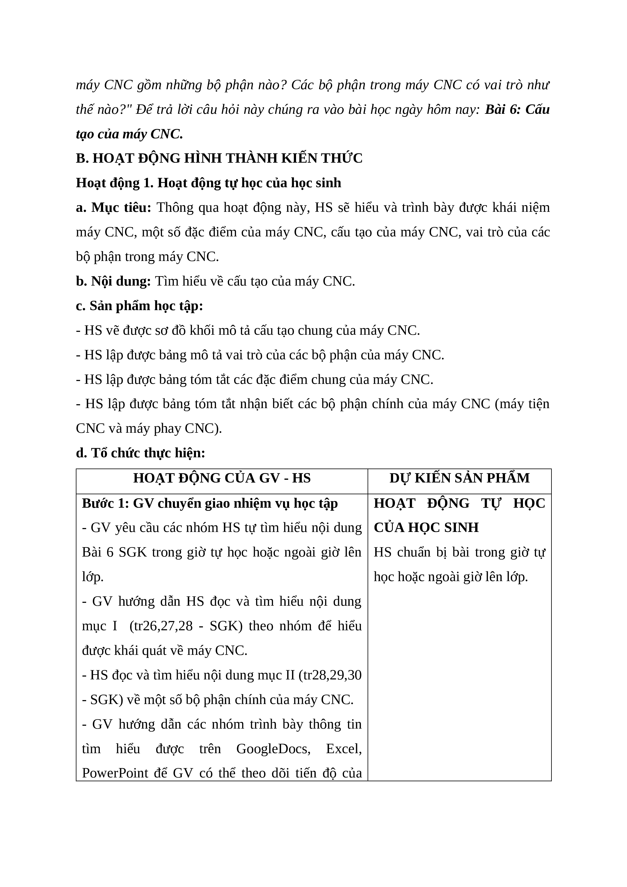 b. Nội dung: Tìm hiểu về cấu tạo của máy CNC.