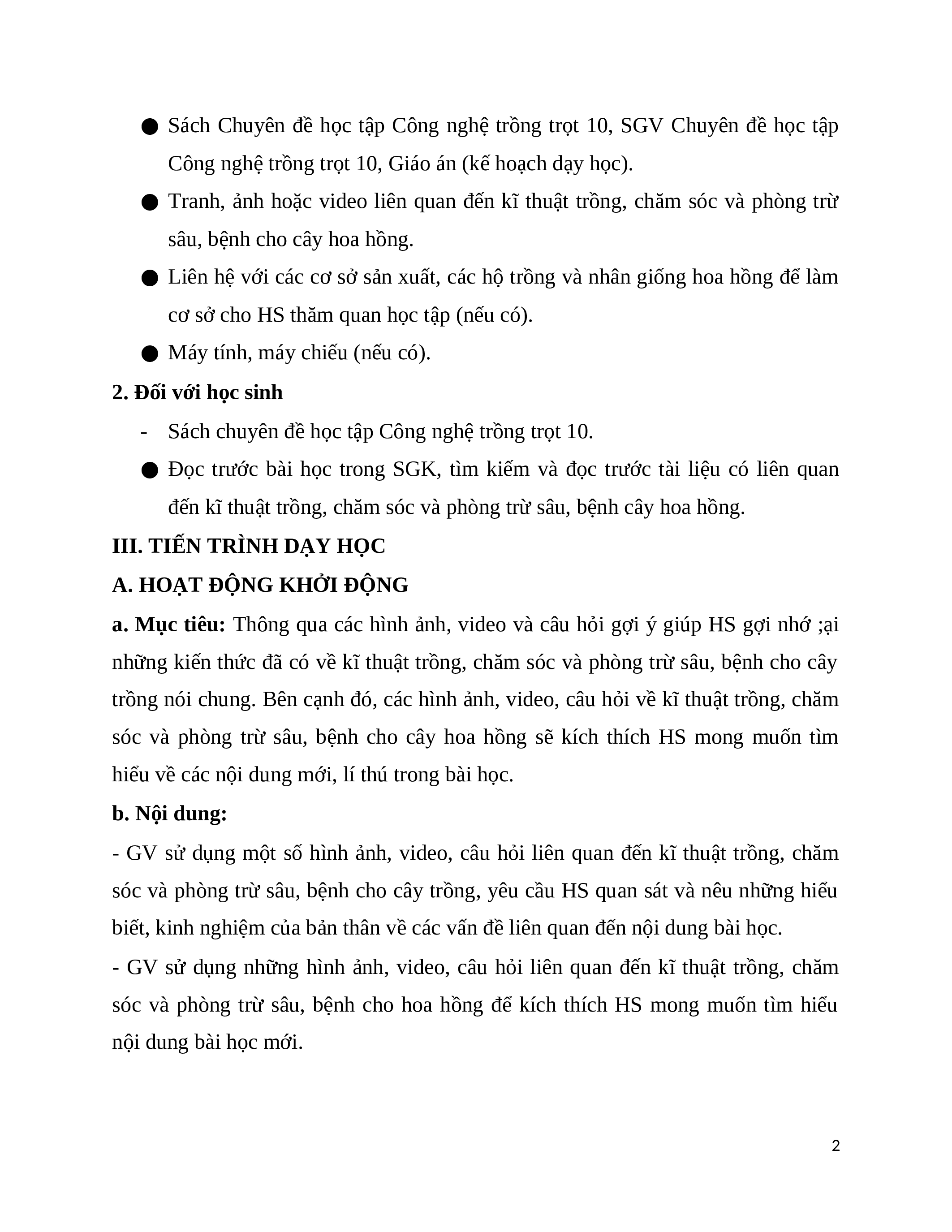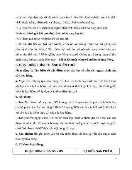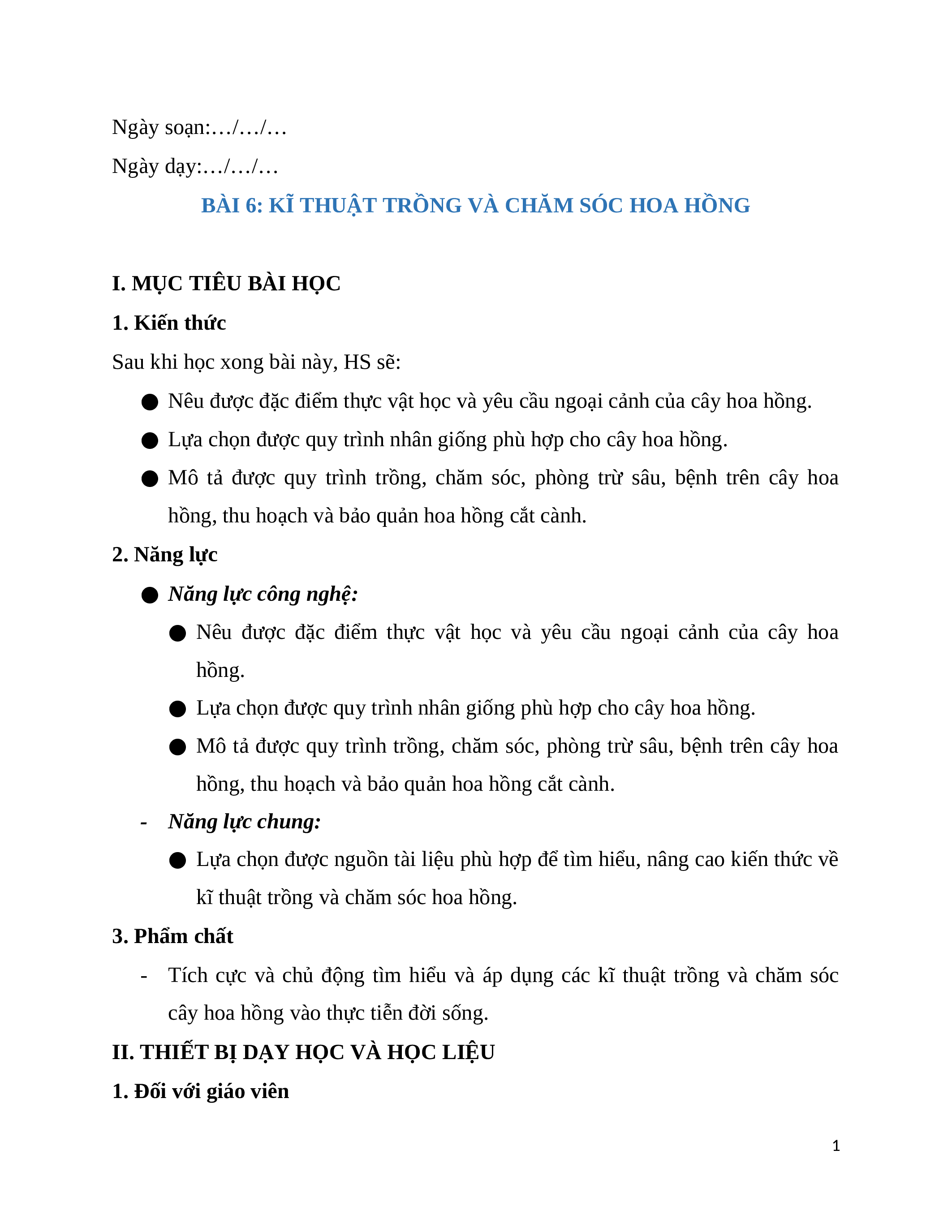 Giáo án chuyên đề Bài 6: Kĩ thuật trồng và chăm sóc hoa hồng Công nghệ trồng trọt 10 Kết nối tri thức