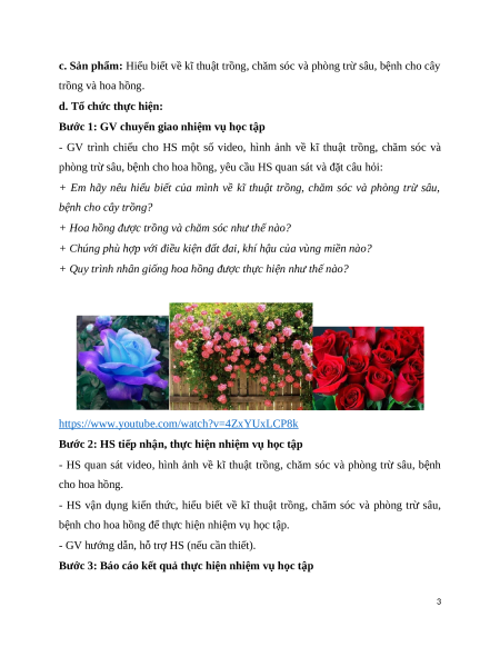 - HS quan sát video, hình ảnh về kĩ thuật trồng, chăm sóc và phòng trừ sâu, bệnh cho hoa hồng.