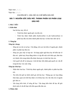 Giáo án chuyên đề Bài 7: Nguồn gốc dầu mỏ. Thành phần và phân loại dầu mỏ Hóa học 11 Kết nối tri thức