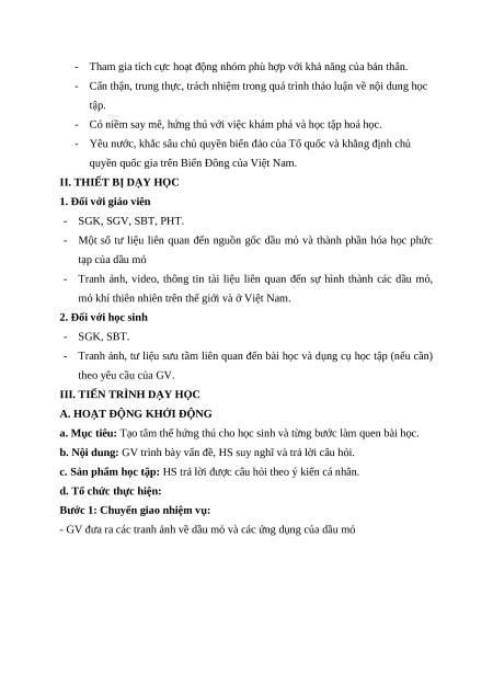 - GV nêu câu hỏi khởi động: “Tại sao nói dầu mỏ là nguồn tài nguyên thiên nhiên