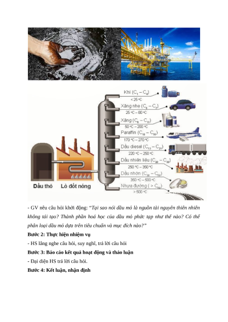 - GV đưa ra các tranh ảnh về dầu mỏ và các ứng dụng của dầu mỏ