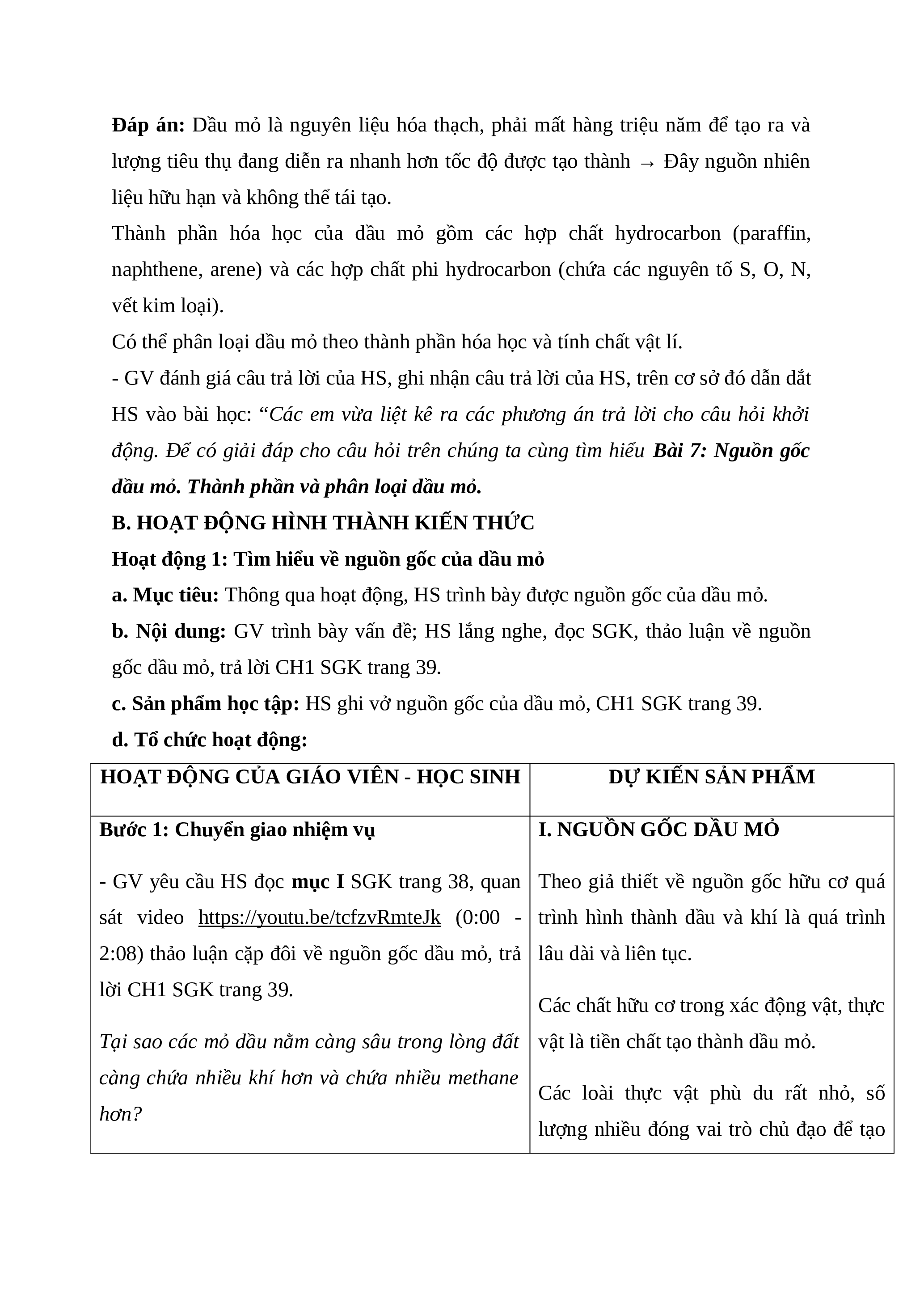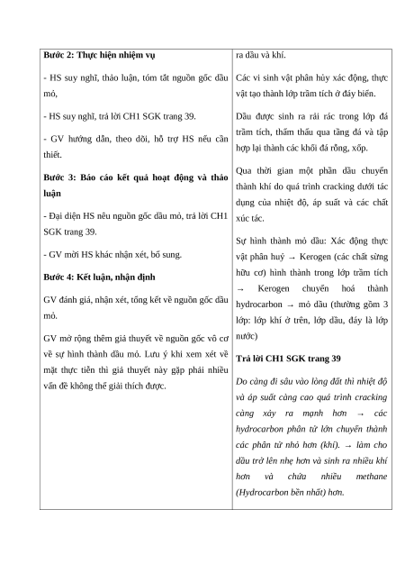 2:08) thảo luận cặp đôi về nguồn gốc dầu mỏ, trả lâu dài và liên tục. lời CH1 SGK trang 39.
