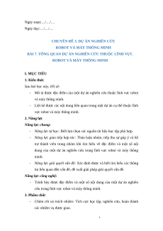 Giáo án chuyên đề Bài 7: Tổng quan dự án nghiên cứu lĩnh vực robot và máy thông minh 12 Kết nối tri thức