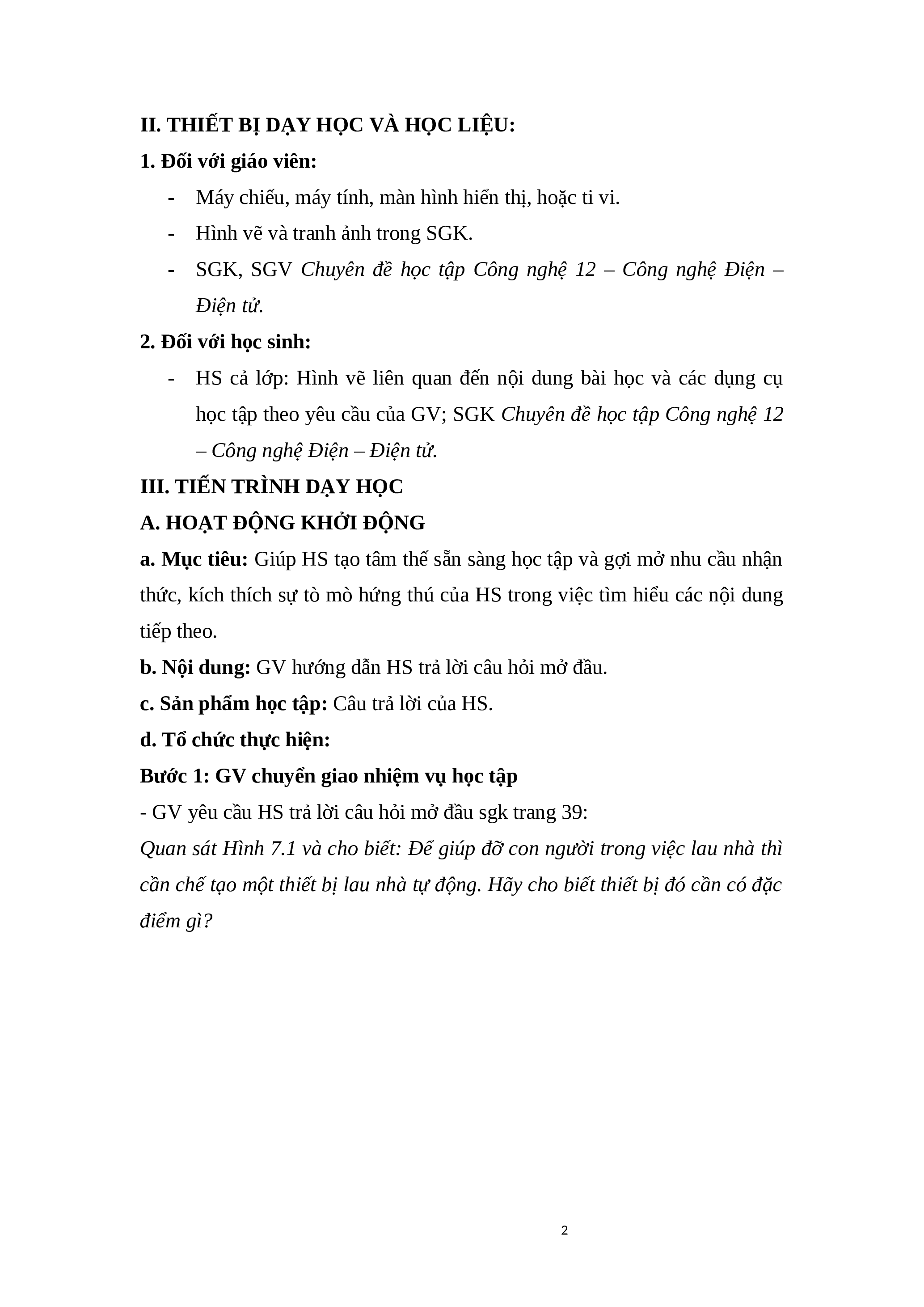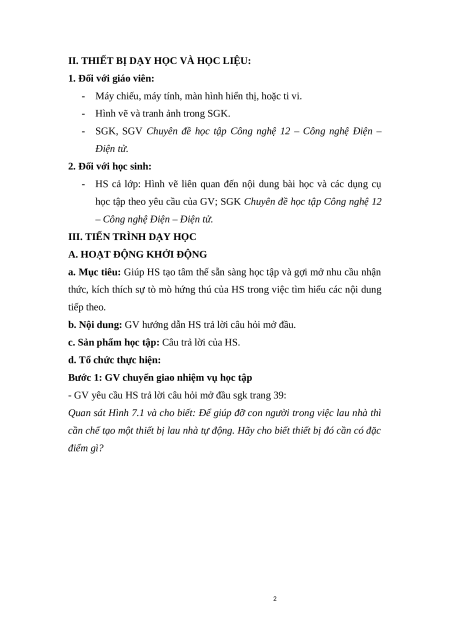 II. THIẾT BỊ DẠY HỌC VÀ HỌC LIỆU: