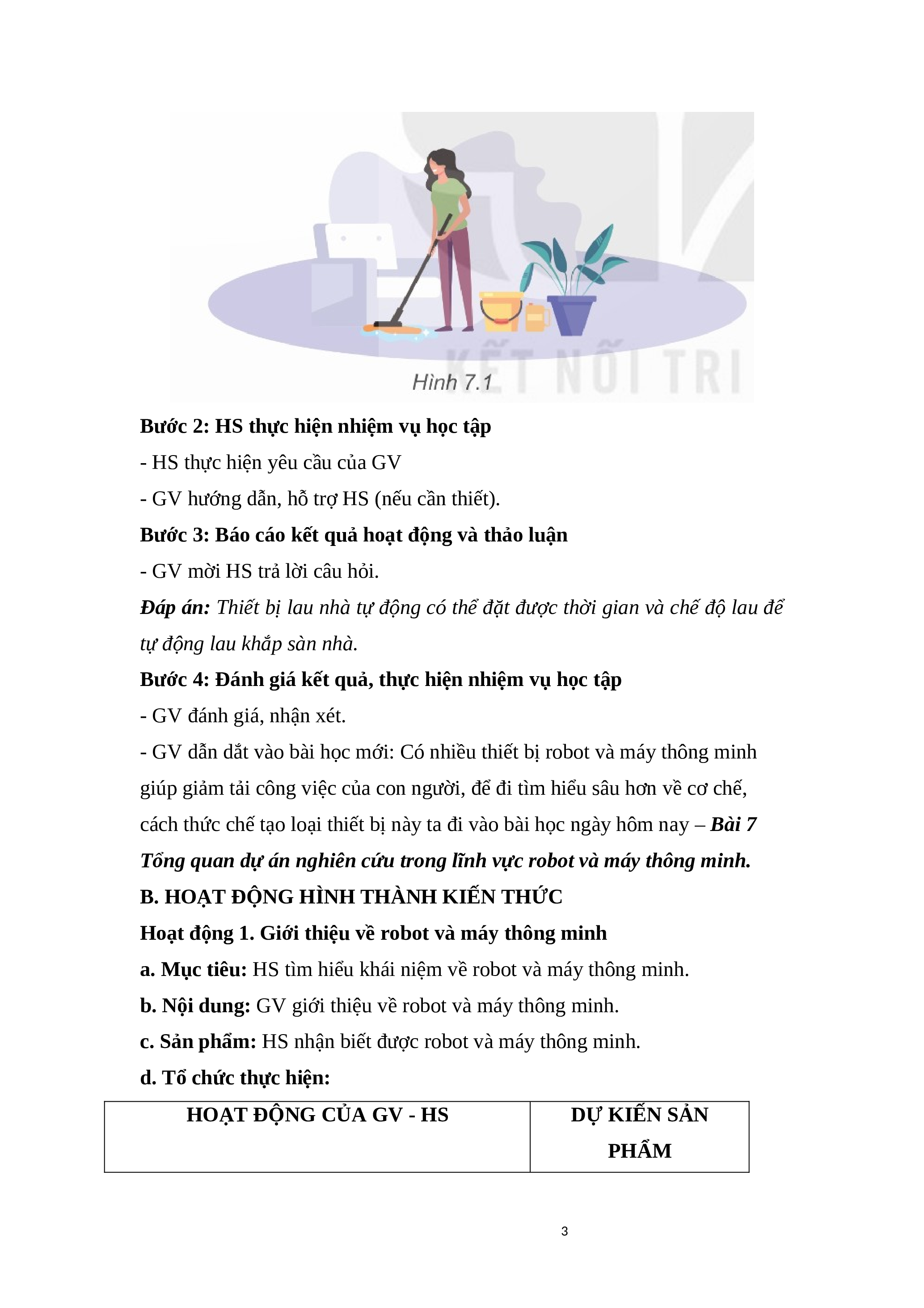 Quan sát Hình 7.1 và cho biết: Để giúp đỡ con người trong việc lau nhà thì