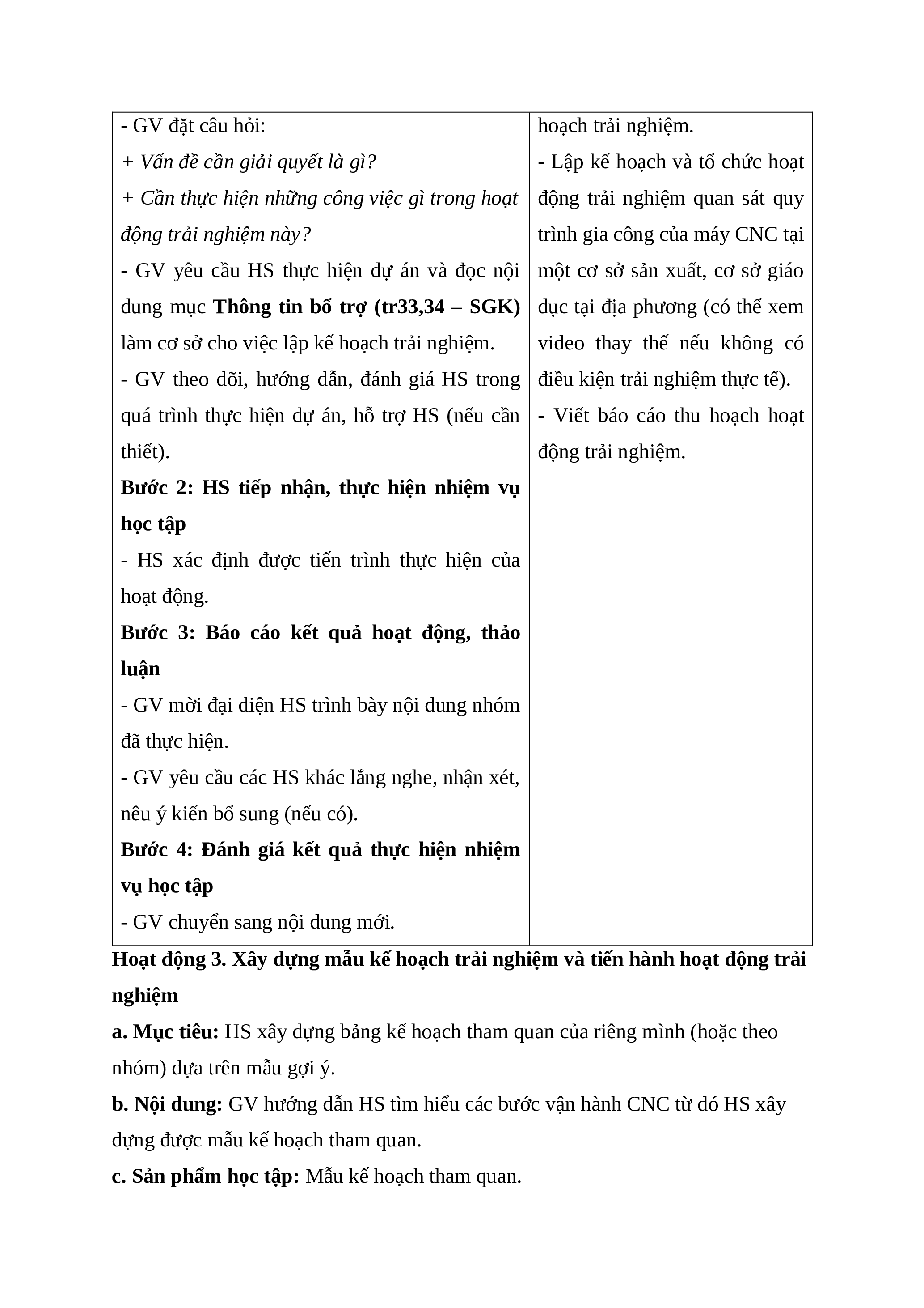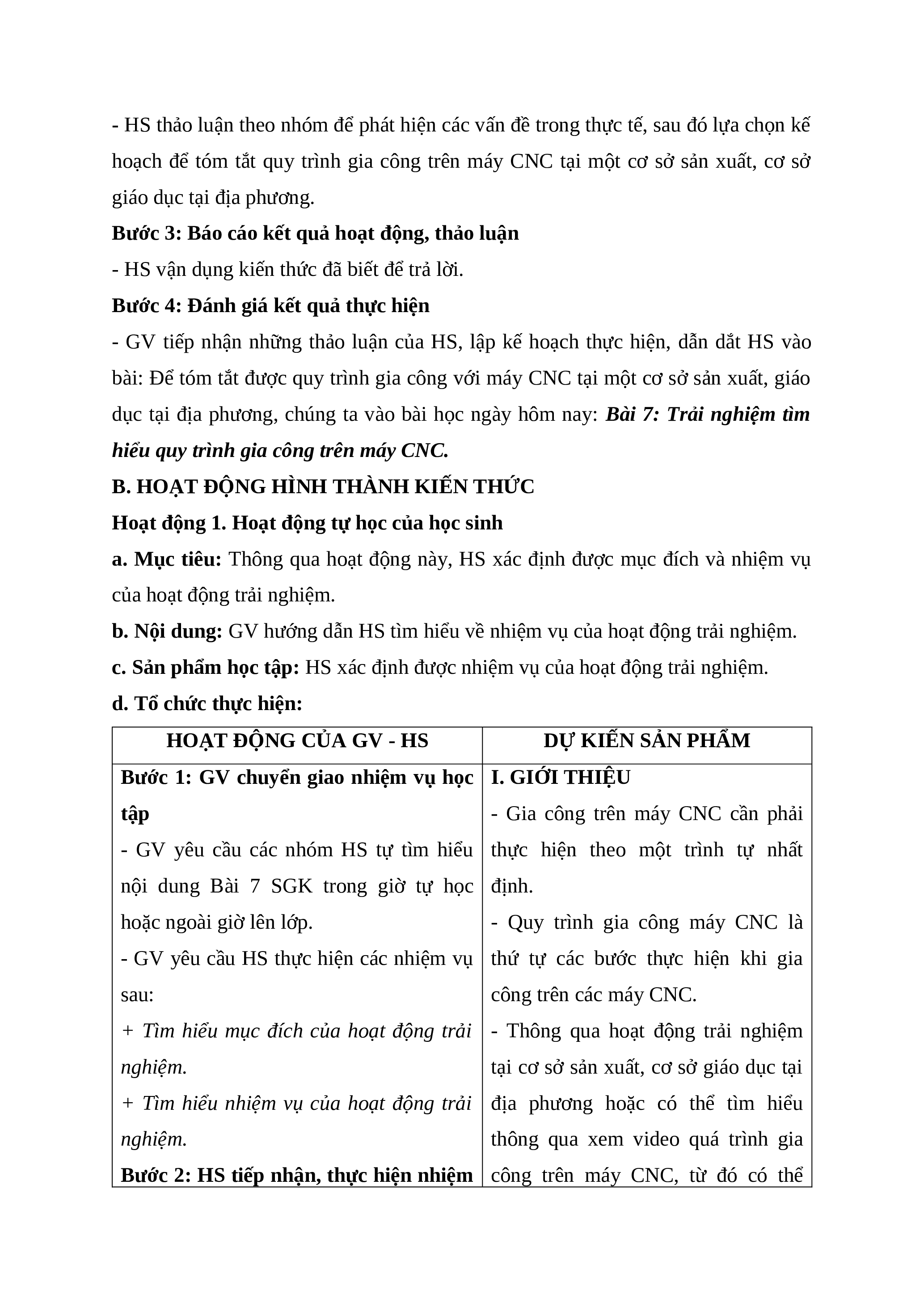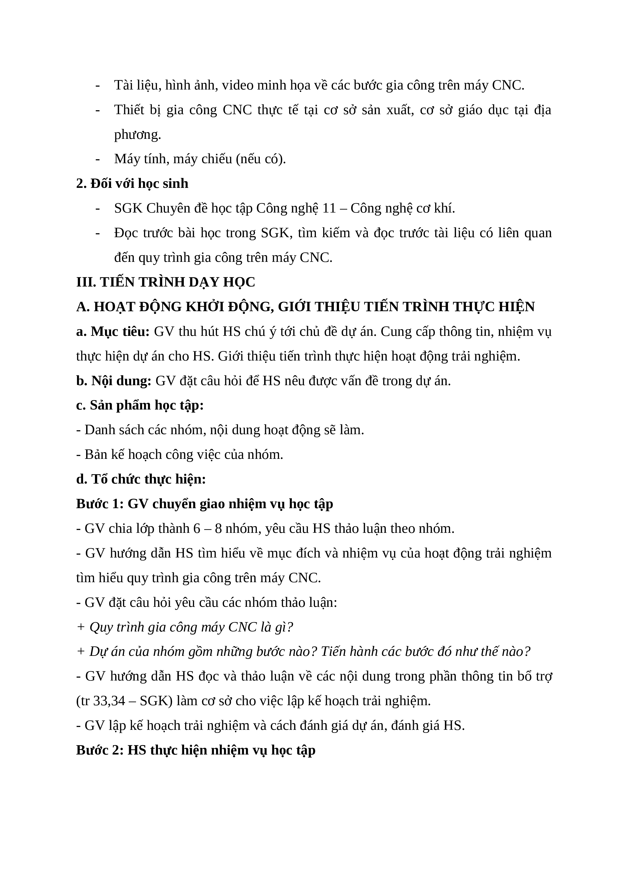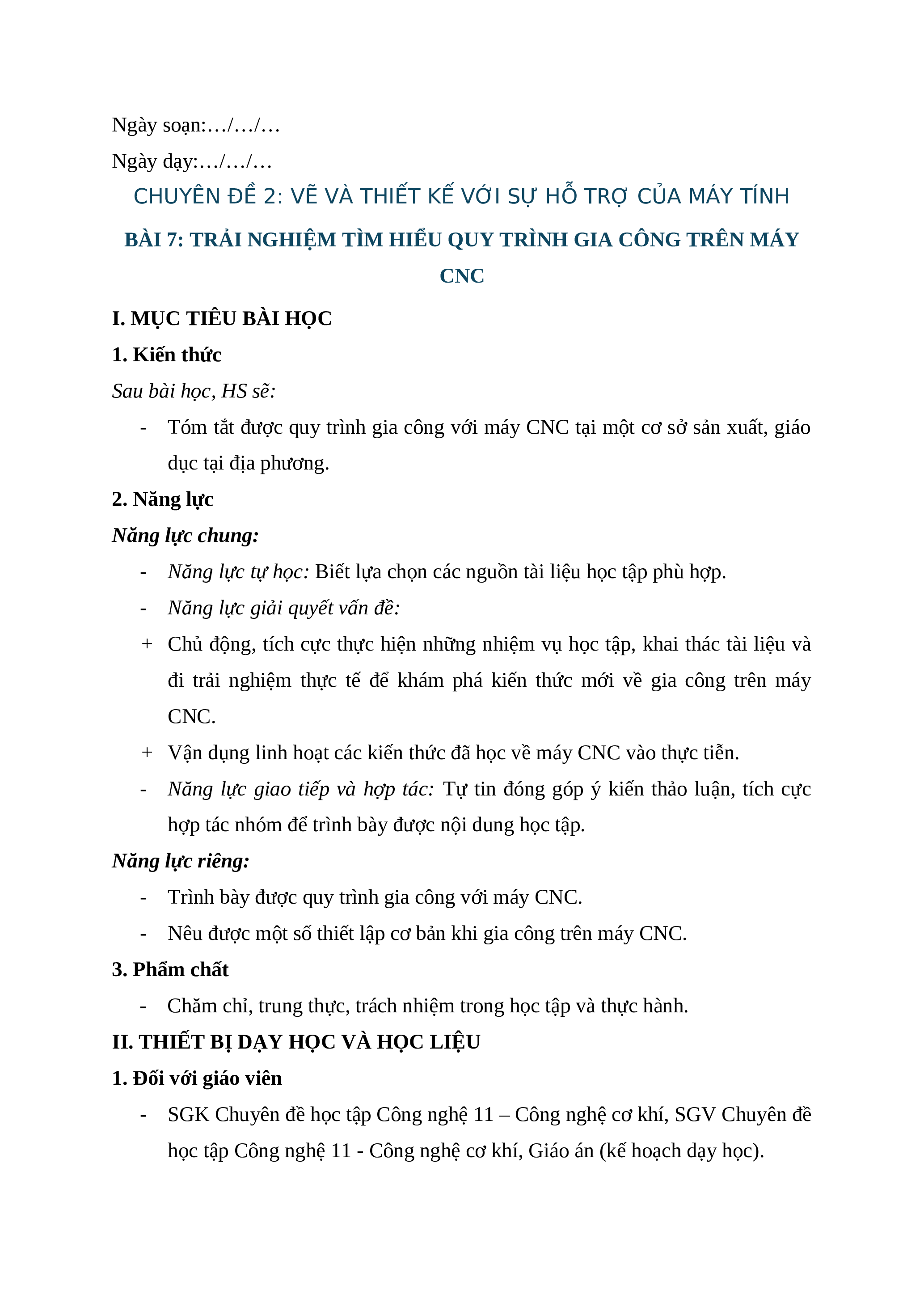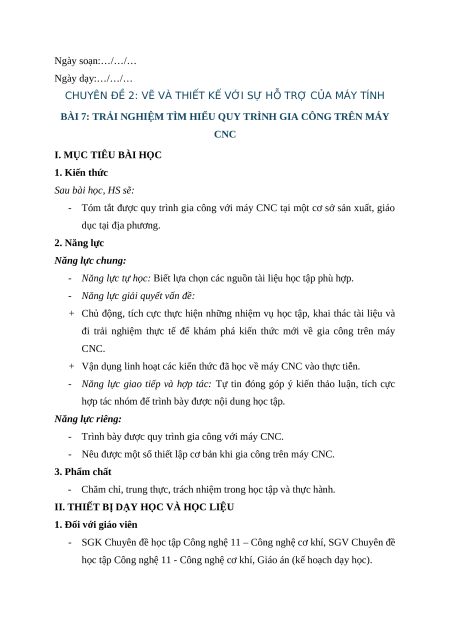 Giáo án chuyên đề Bài 7: Trải nghiệm tìm hiểu quy trình gia công trên máy CNC Công nghệ cơ khí 11 Kết nối tri thức