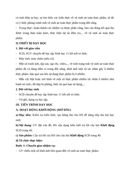 Giáo án chuyên đề Bài 9: Khái quát về vệ sinh an toàn thực phẩm Sinh học 11 Kết nối tri thức