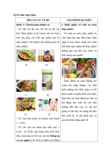 - GV đặt vấn đề, yêu cầu HS trả lời câu thực phẩm