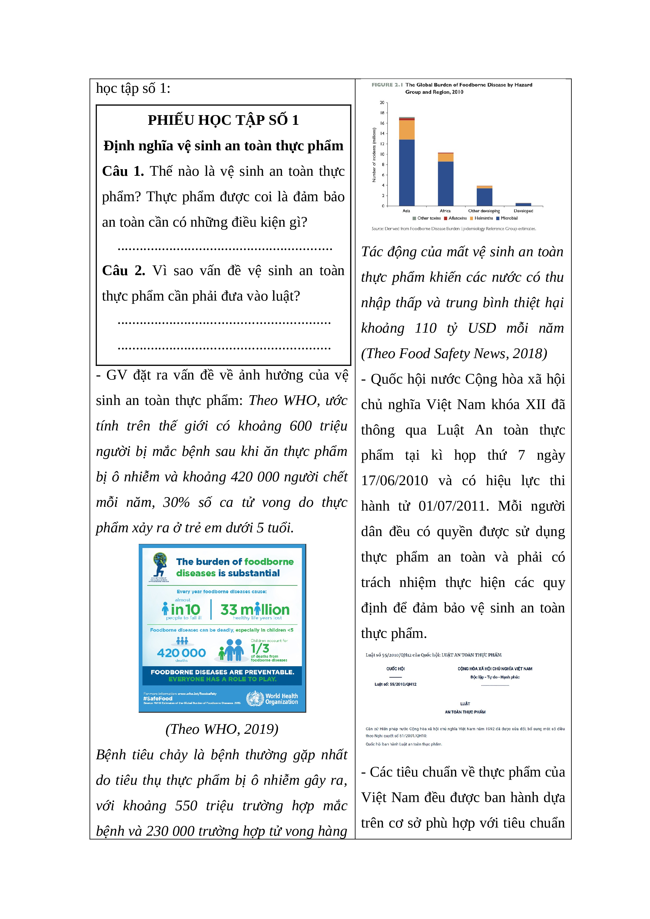 Hoạt động 1: Tìm hiểu về định nghĩa vệ sinh an toàn thực phẩm