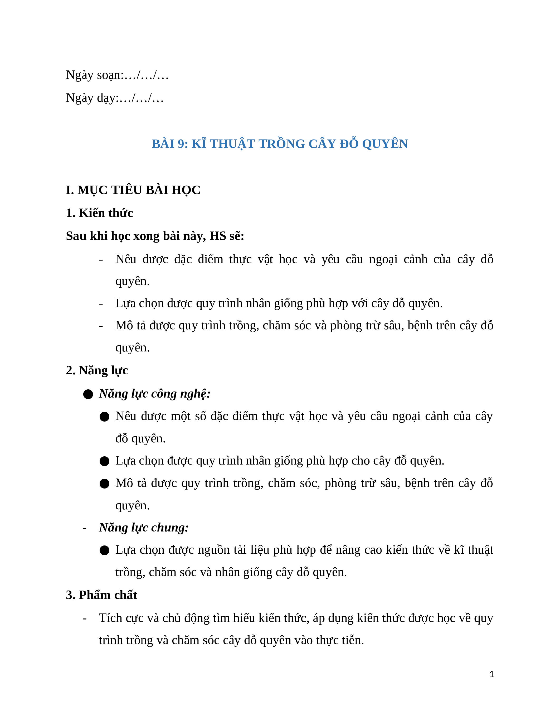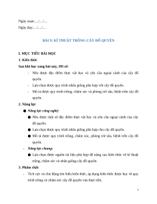Giáo án chuyên đề Bài 9: Kĩ thuật trồng cây đỗ quyên Công nghệ trồng trọt 10 Kết nối tri thức