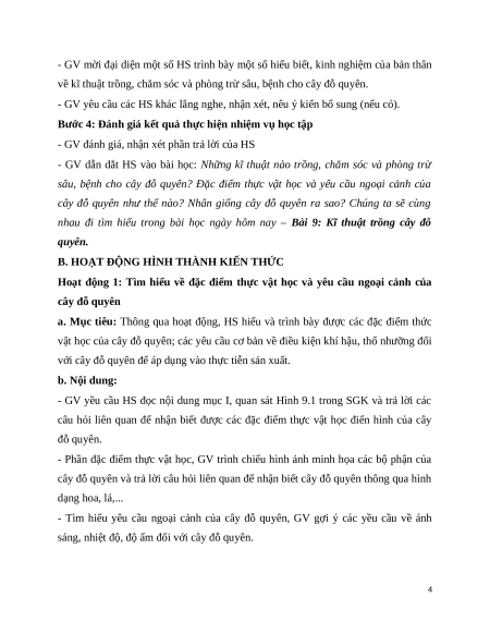 - GV sử dụng những hình ảnh, video, câu hỏi liên quan đến kĩ thuật trồng, chăm