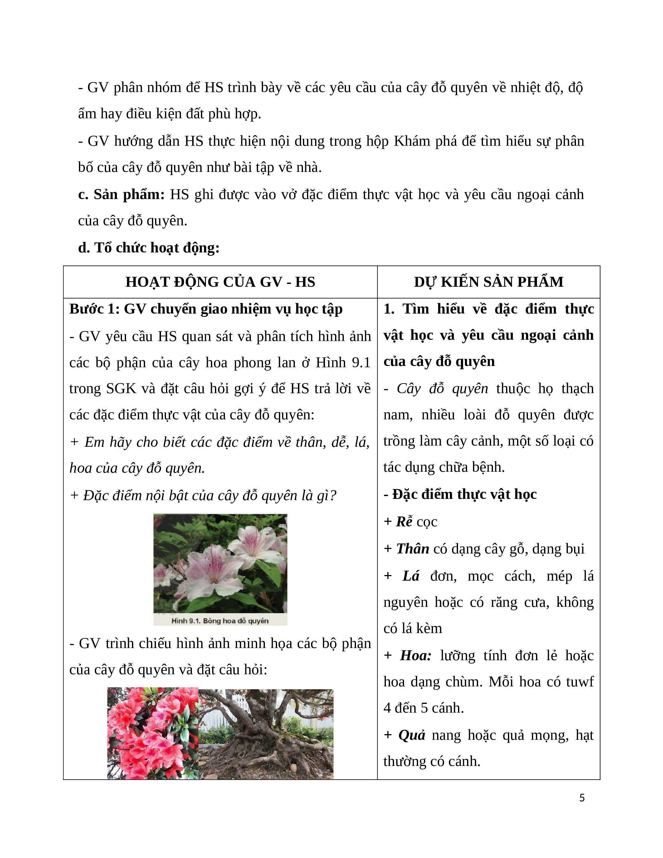 Hoạt động 1: Tìm hiểu về đặc điểm thực vật học và yêu cầu ngoại cảnh của cây đỗ quyên