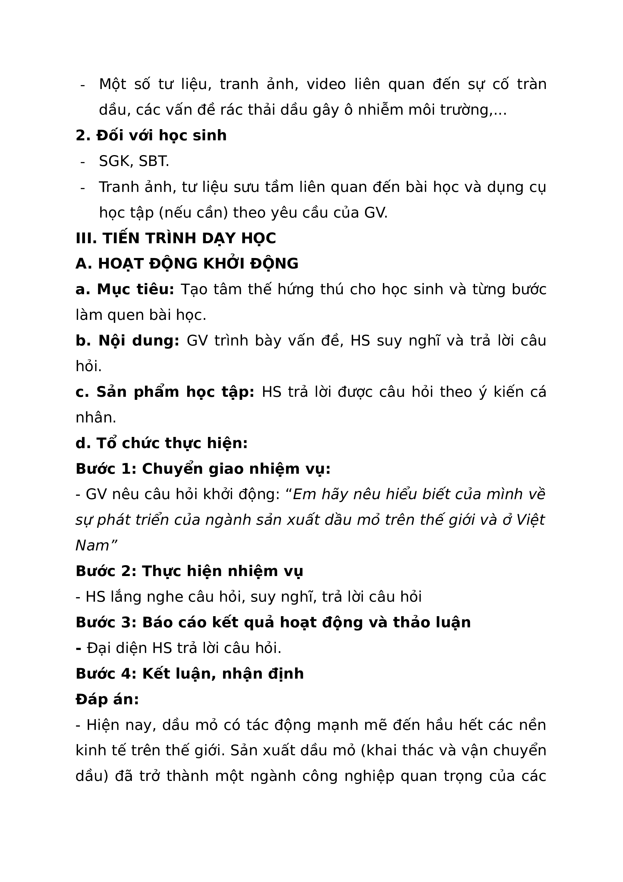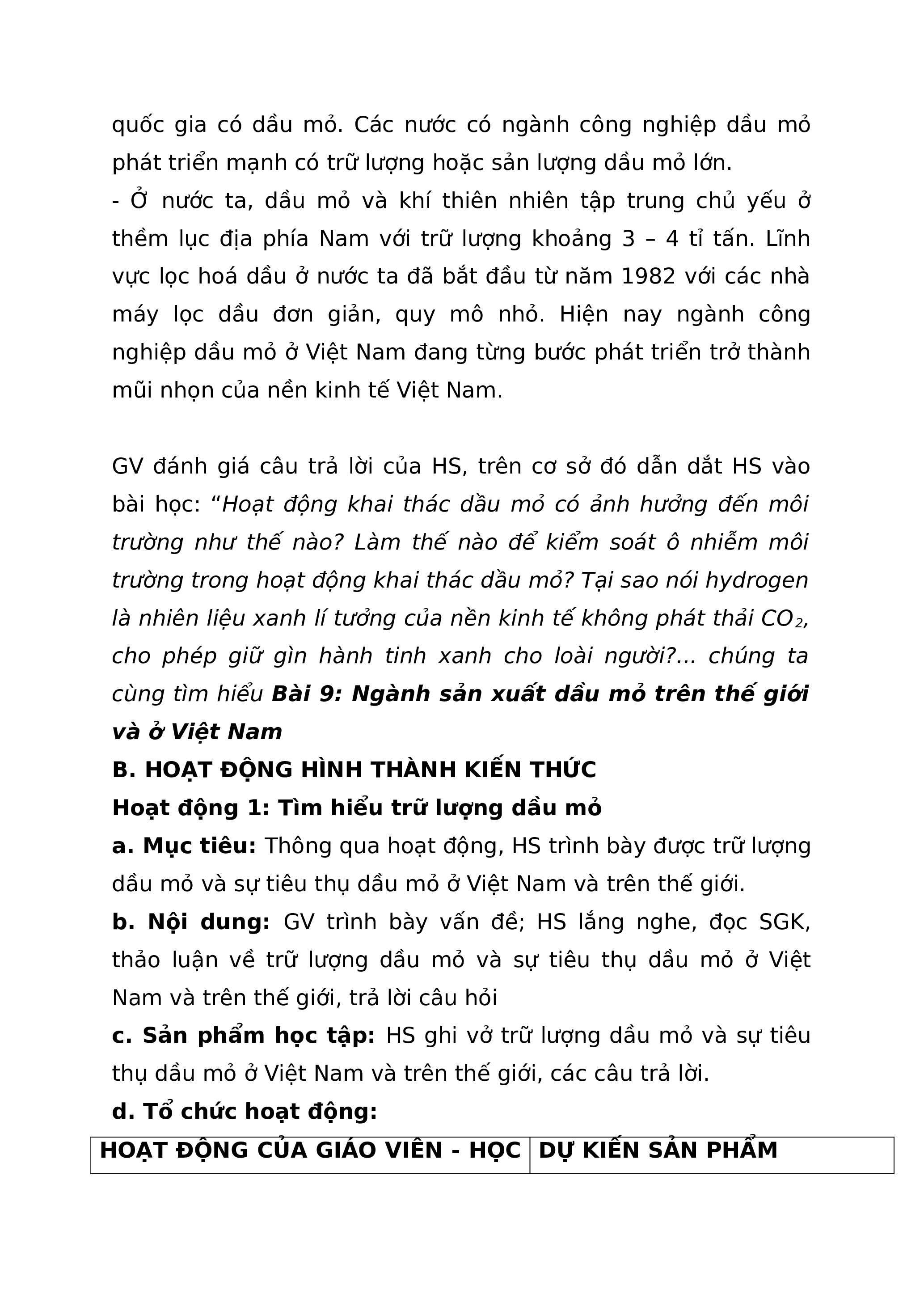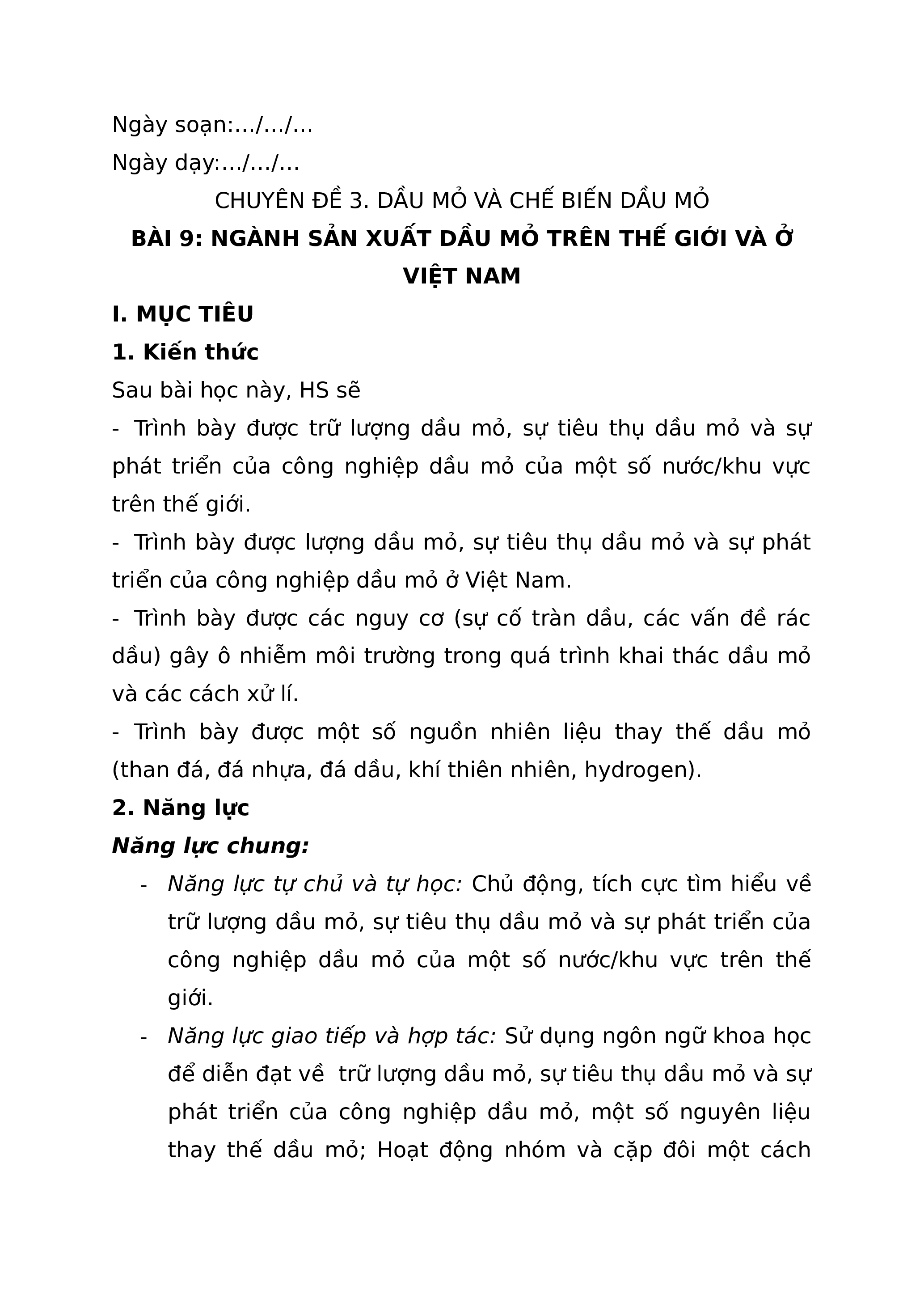 BÀI 9: NGÀNH SẢN XUẤT DẦU MỎ TRÊN THẾ GIỚI VÀ Ở VIỆT NAM I. MỤC TIÊU 1. Kiến thức Sau bài học này, HS sẽ
