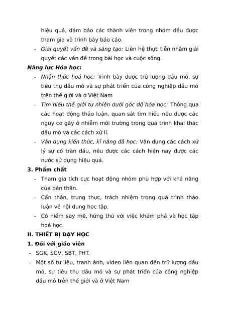 - Nhận thức hoá học: Trình bày được trữ lượng dầu mỏ, sự