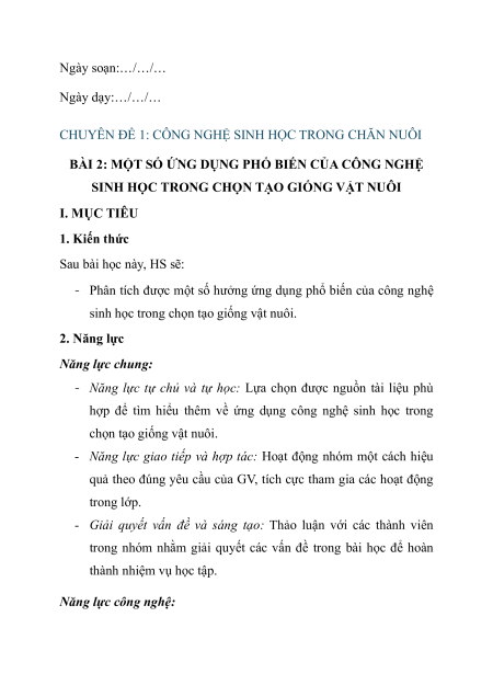 sinh học trong chọn tạo giống vật nuôi. 2. Năng lực Năng lực chung: