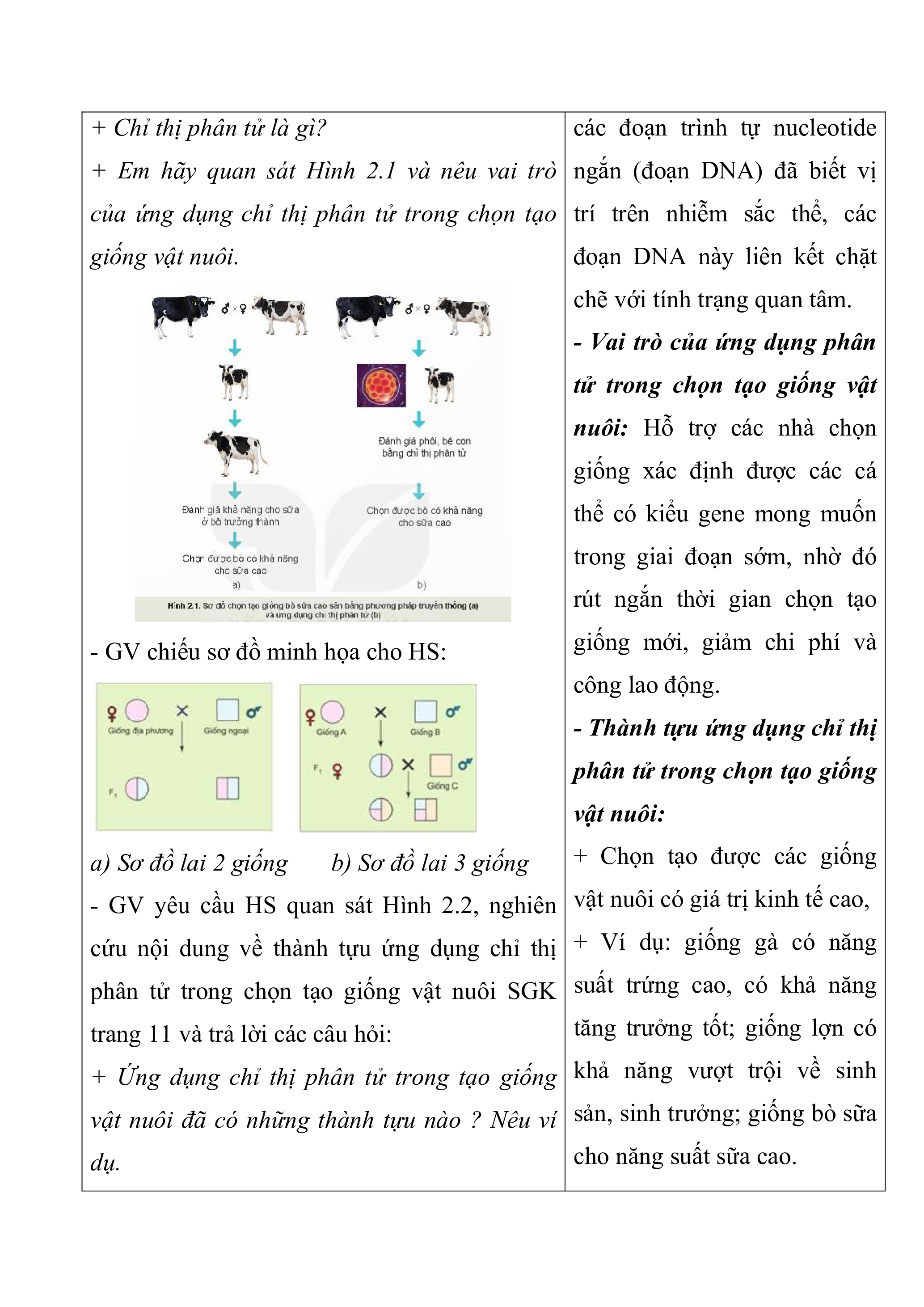 - GV yêu cầu HS quan sát Hình 2.1, nghiên trong chọn tạo giống vật