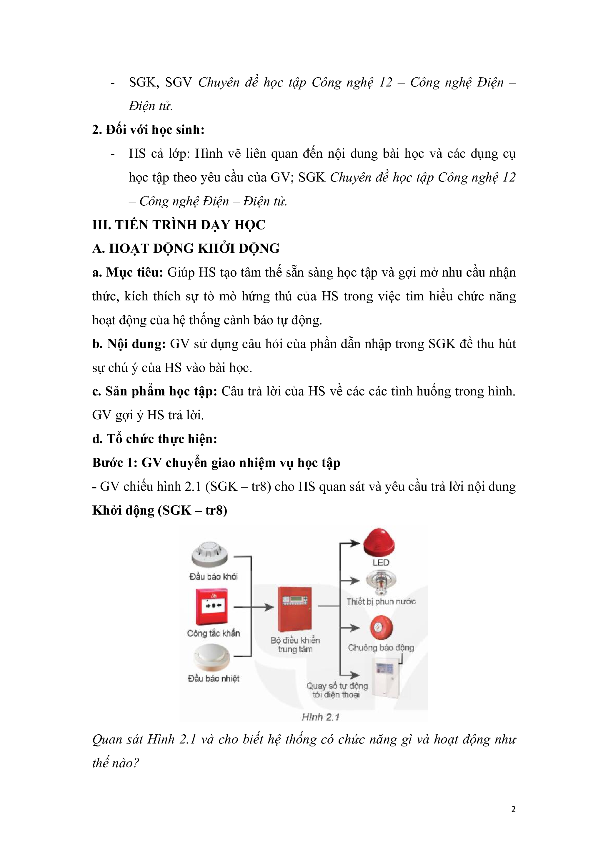 - Trình bày được cấu trúc, nguyên lí hoạt động của hệ thống cảnh báo
