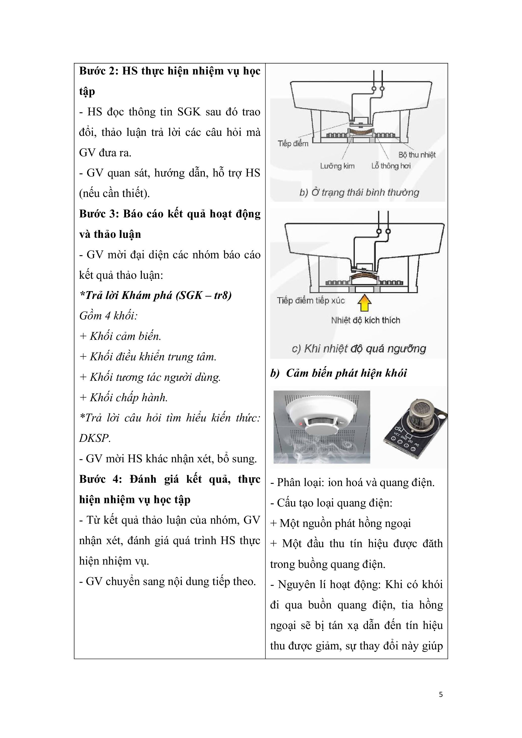 chức năng cơ bản của khối điều khiển a) Cảm biến phát hiện nhiệt.