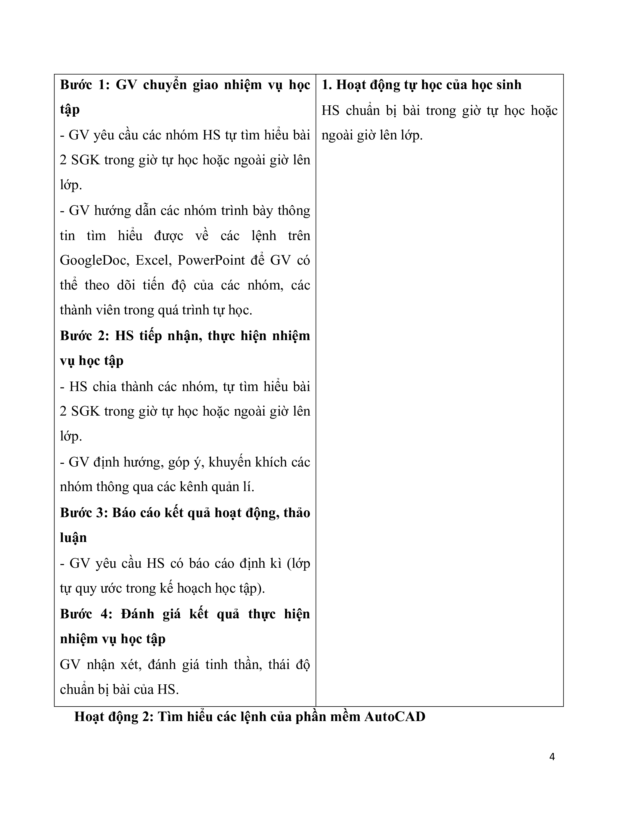 Hoạt động 2: Tìm hiểu các lệnh của phần mềm AutoCAD 4