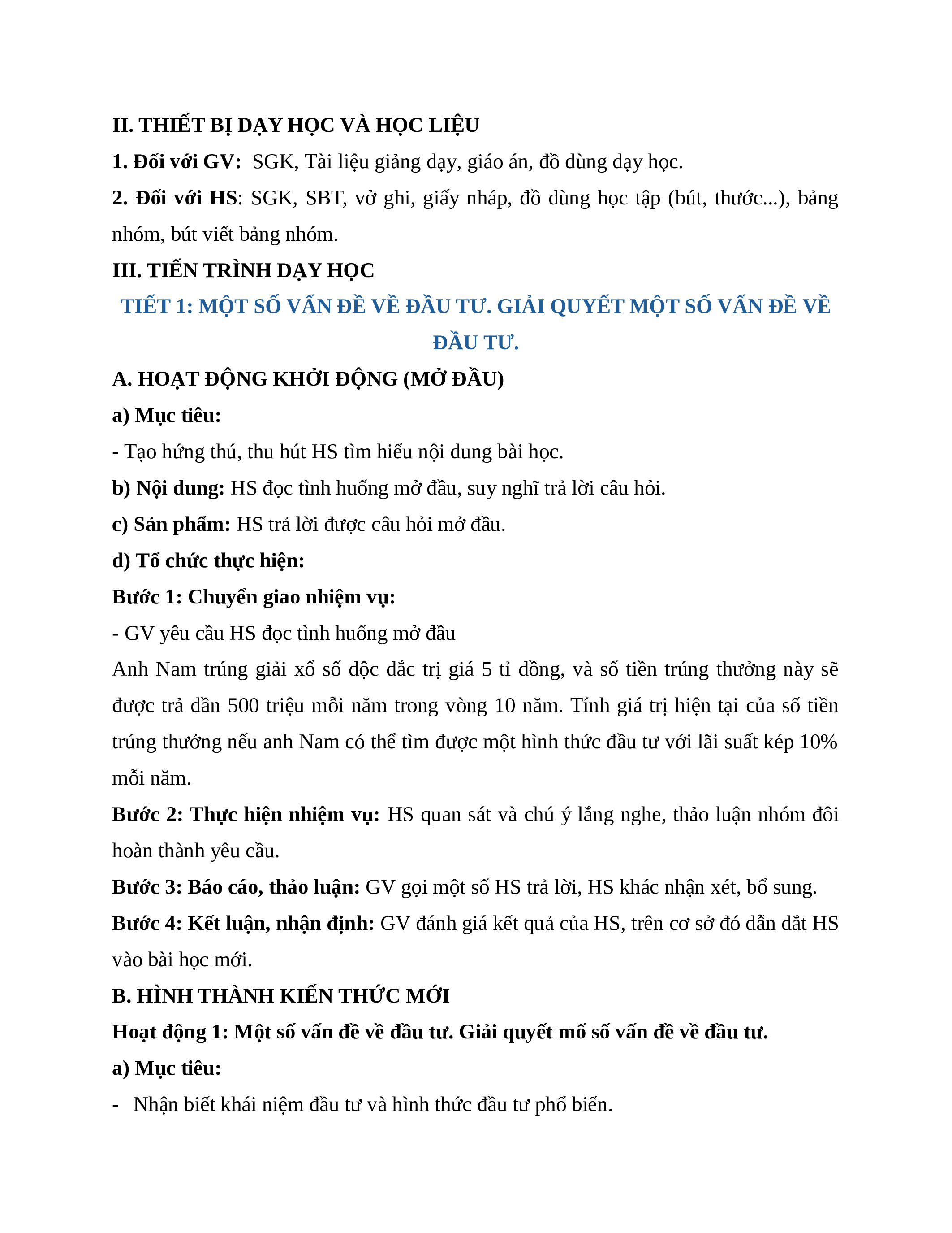 Giáo án chuyên đề Đầu tư tài chính. Lập kế hoạch tài chính cá nhân Toán 12 Kết nối tri thức