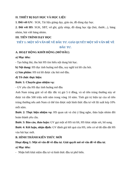 TIẾT 1: MỘT SỐ VẤN ĐỀ VỀ ĐẦU TƯ. GIẢI QUYẾT MỘT SỐ VẤN ĐỀ VỀ ĐẦU TƯ.