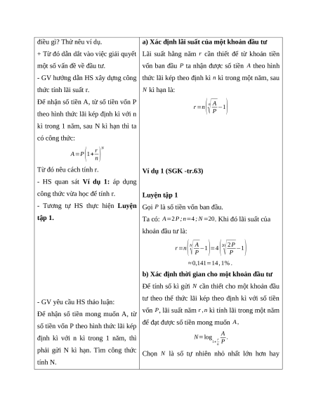 A=P(1+r )N n Từ đó nêu cách tính r. Ví dụ 1 (SGK -tr.63)