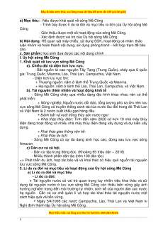 - Nêu được khái quát về lưu vực sông Mê Công.