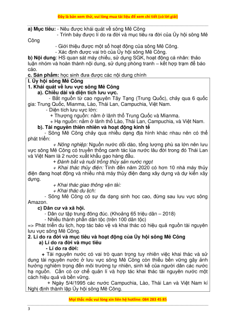 a) Mục tiêu: - Nêu được khái quát về sông Mê Công
