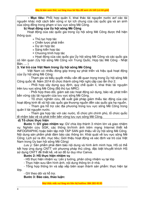- Giới thiệu được một số hoạt động của Uỷ hội sông Mê Công.