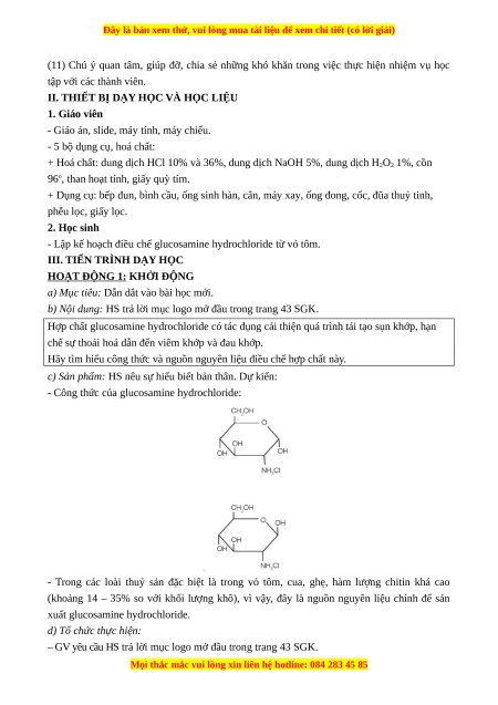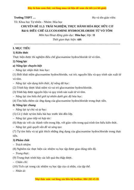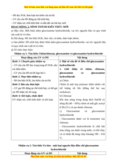 Giáo án chuyên đề Điều chế glucosamine hydrochloride từ vỏ tôm Hóa 11 Cánh diều