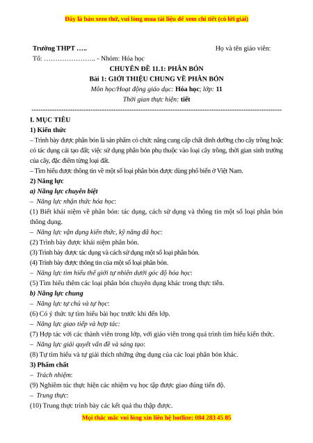 CHUYÊN ĐỀ 11.1: PHÂN BÓN