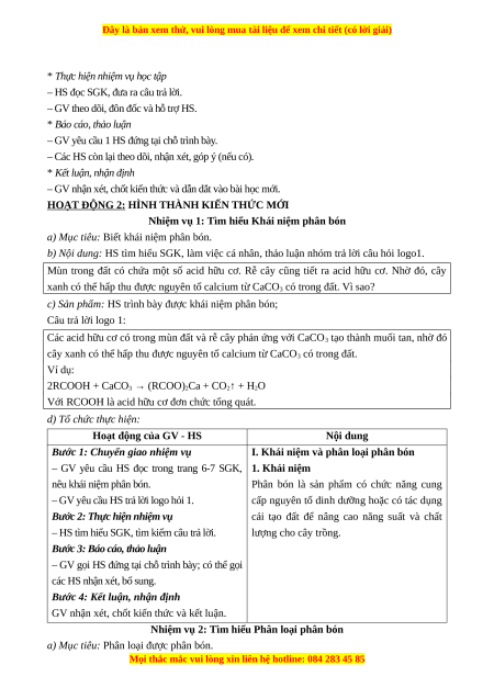 c) Sản phẩm: HS trình bày được khái niệm phân bón; Câu trả lời logo 1: